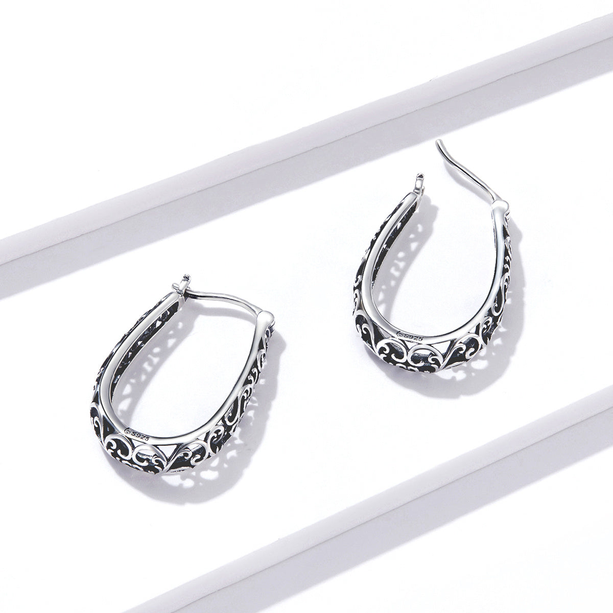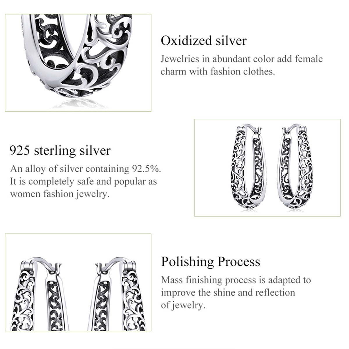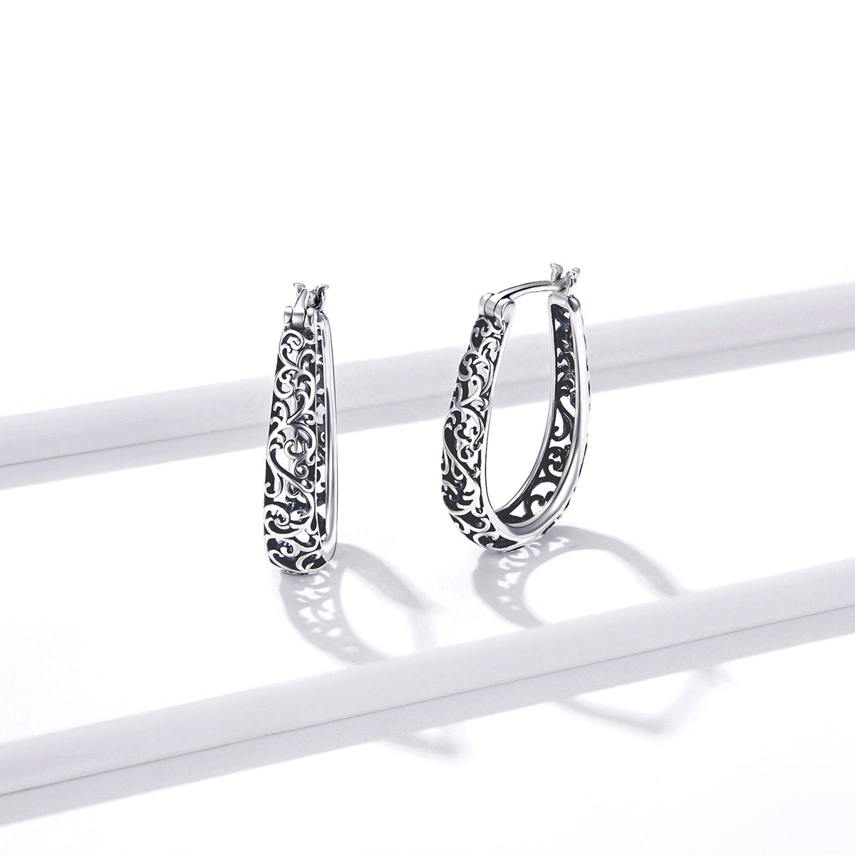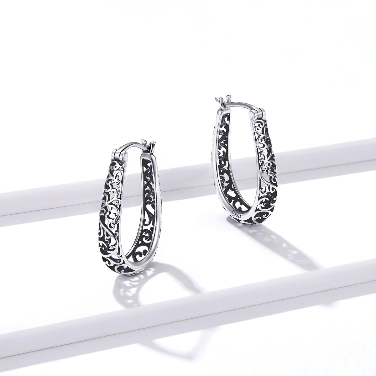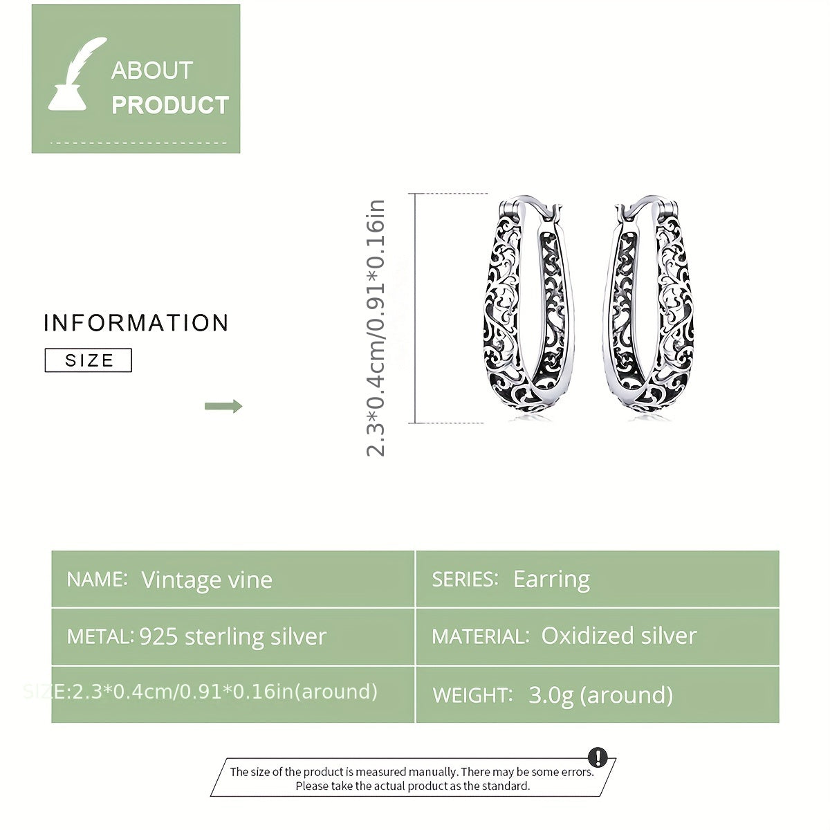 Elegant and minimalistic, these hollow retro vine pattern hoop earrings are made of hypoallergenic 925 sterling silver. Perfect for holiday, birthday, graduation, or party gifts.