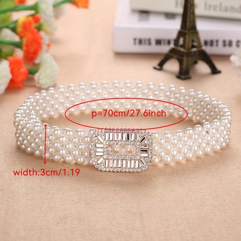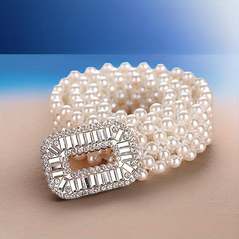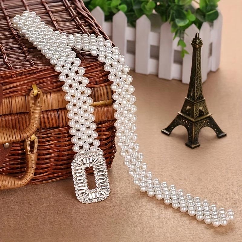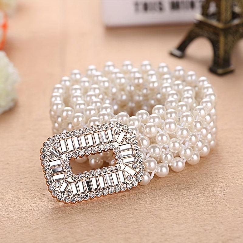 Add a touch of sweetness and fashion to your outfit with this versatile decorative elastic belt featuring pearls.