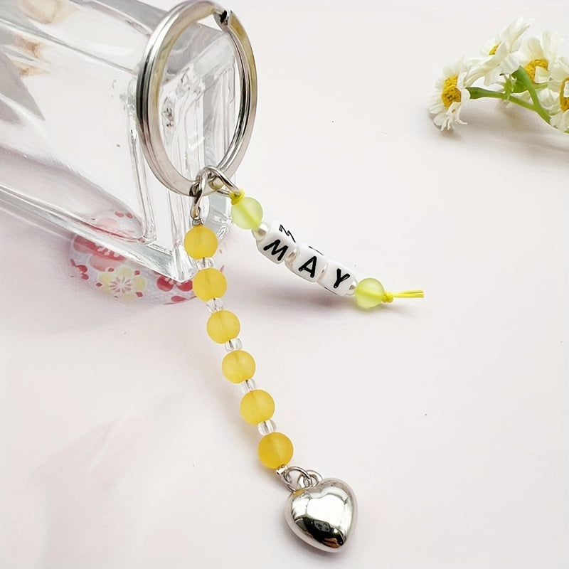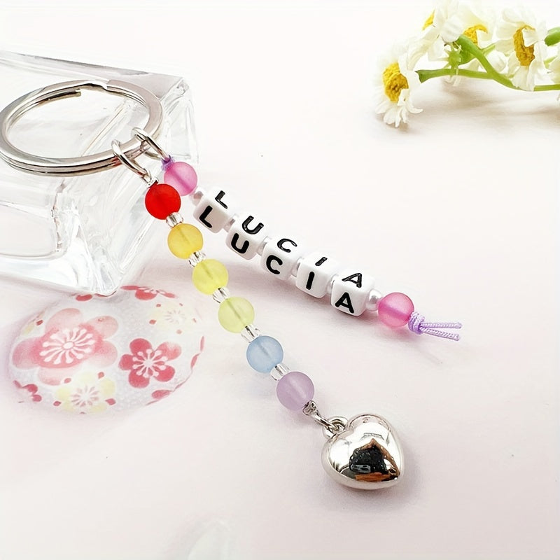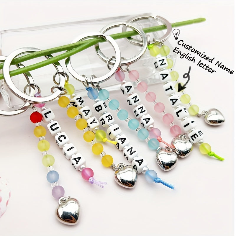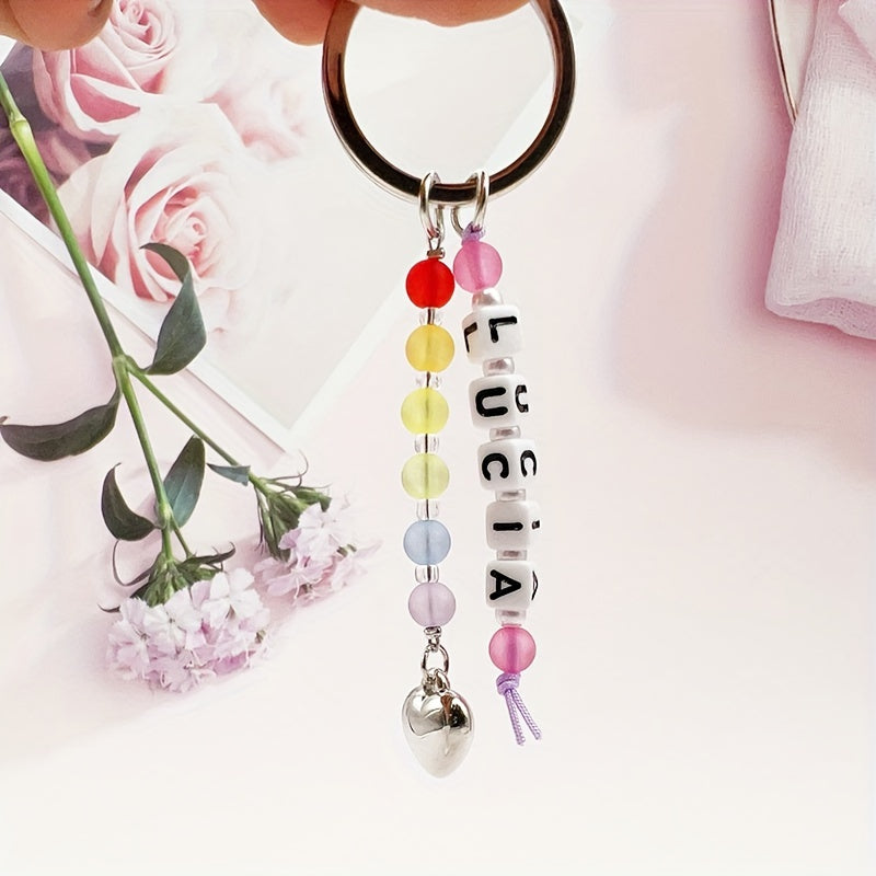 Make your keys stand out with this stylish keychain featuring your choice of acrylic beaded letter and a heart charm.