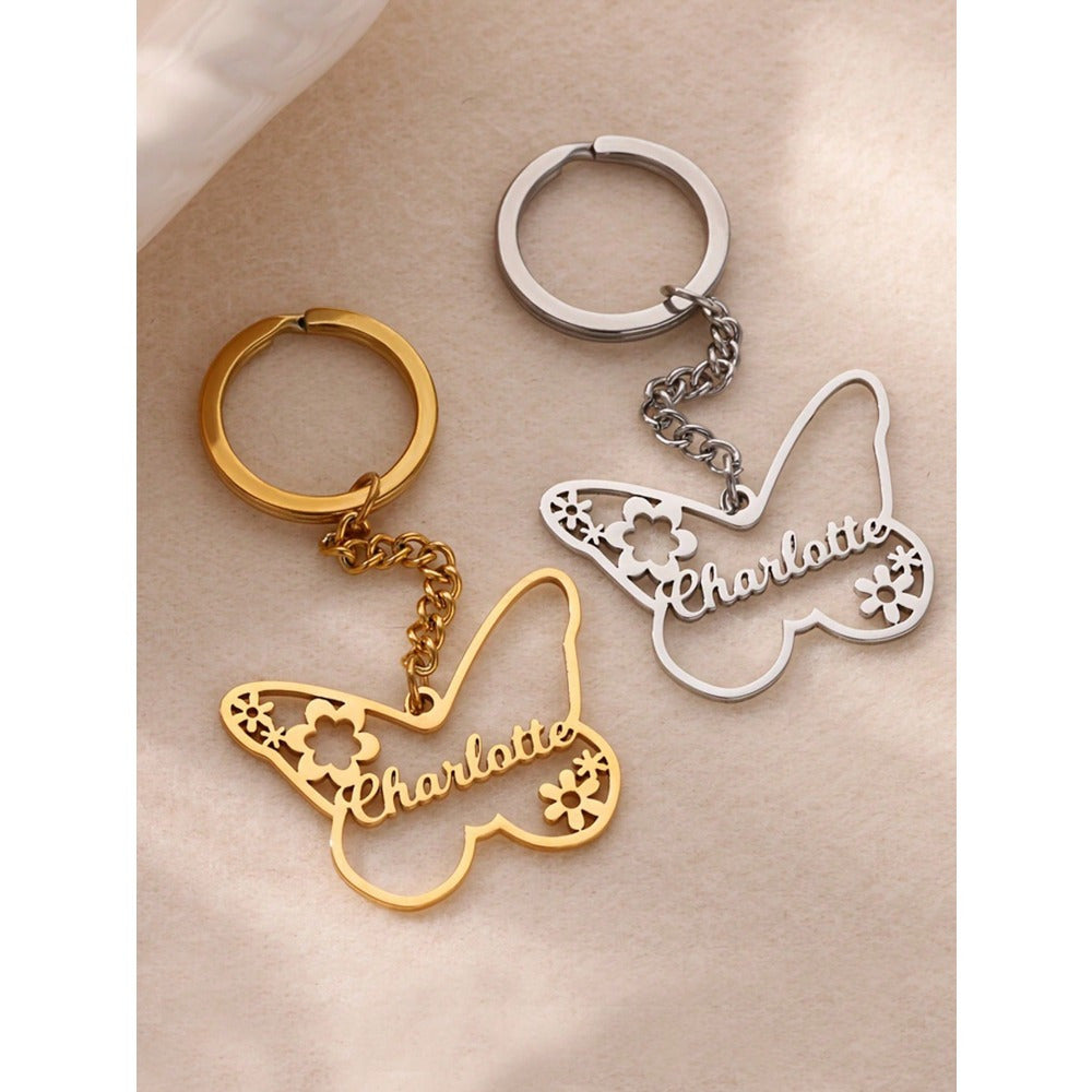 • Customized keychain with engraved name charm