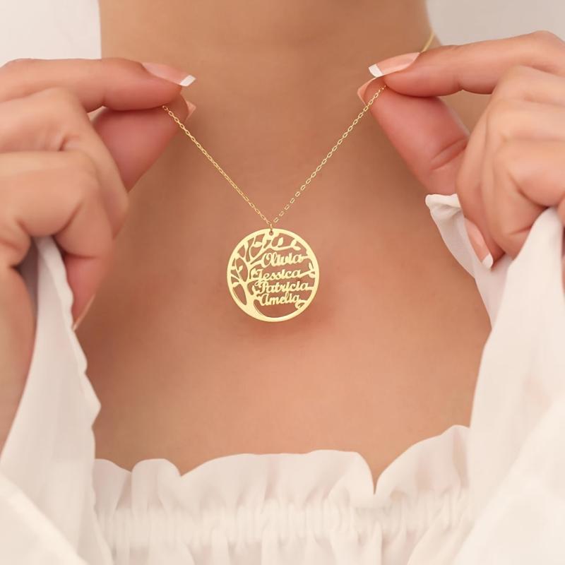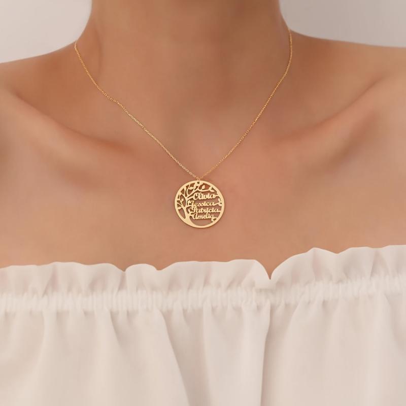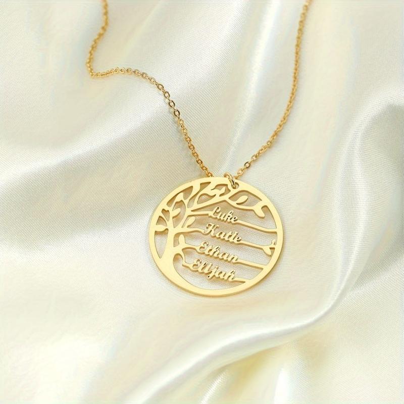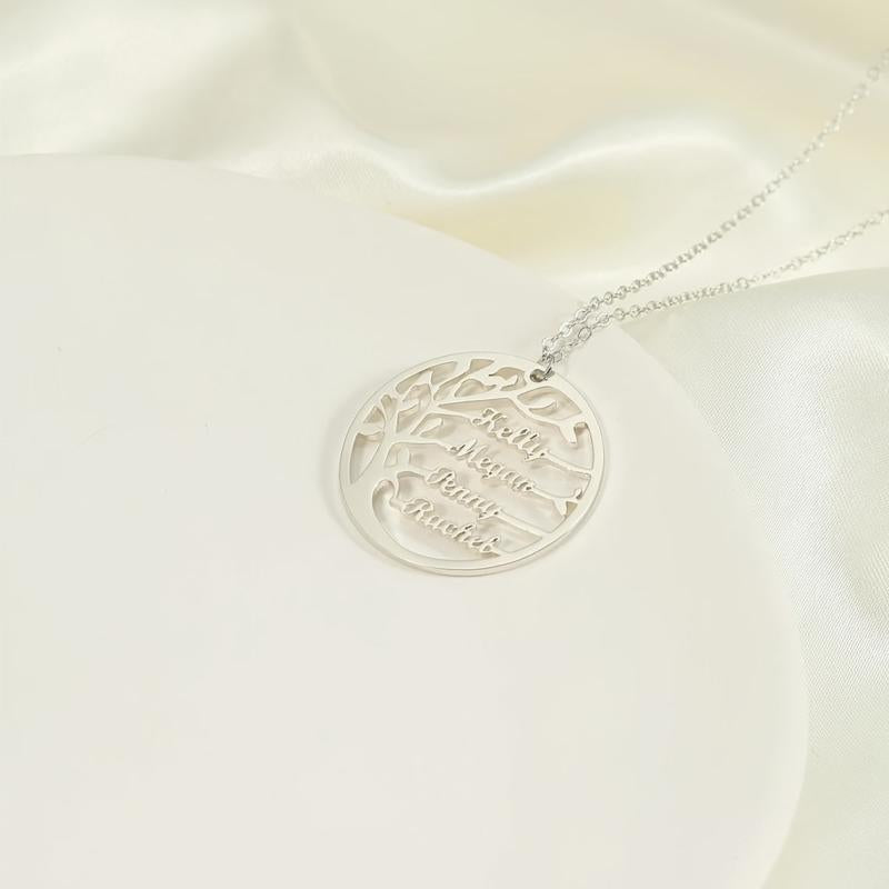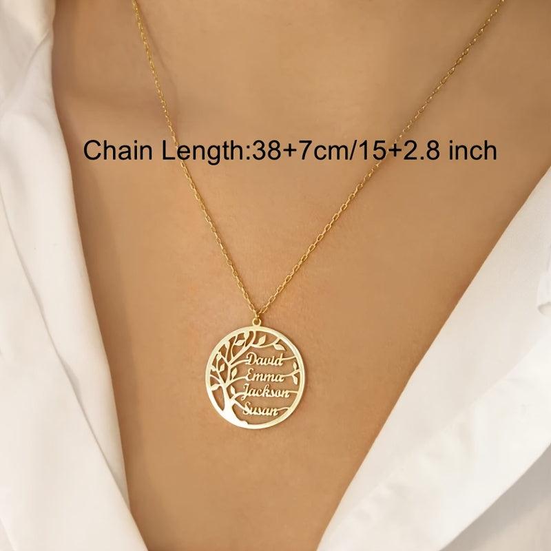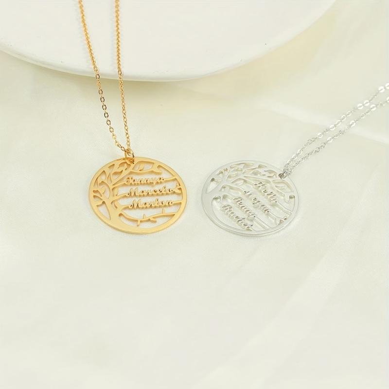 Show your family pride with this personalized name necklace featuring a life tree design. Crafted from stainless steel, this circular pendant is a meaningful accessory.