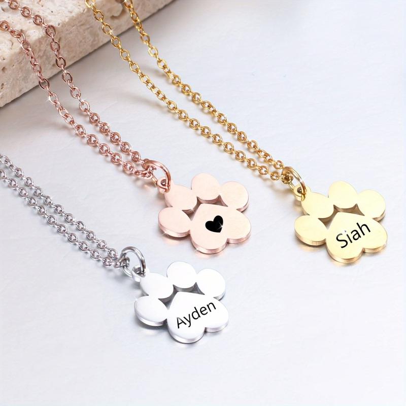 This custom pet paw print necklace is crafted from durable titanium steel, making it perfect for everyday wear or vacation. Show your love for your furry friend with this unique and stylish accessory.