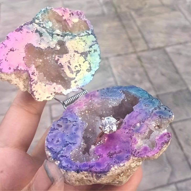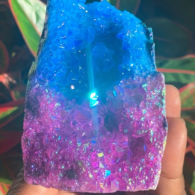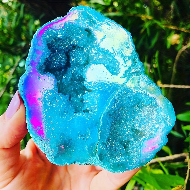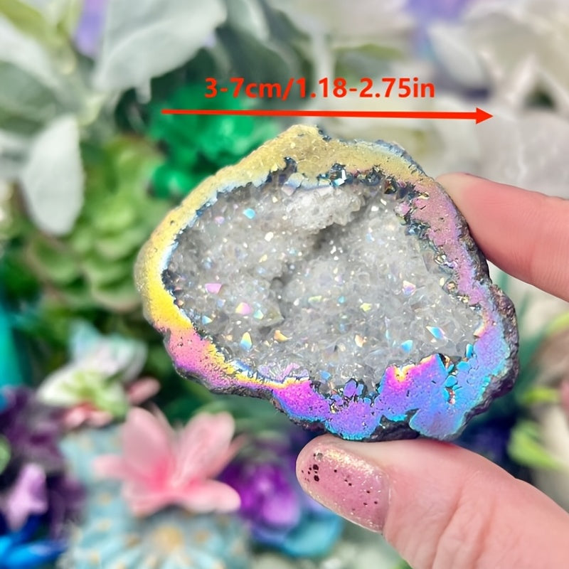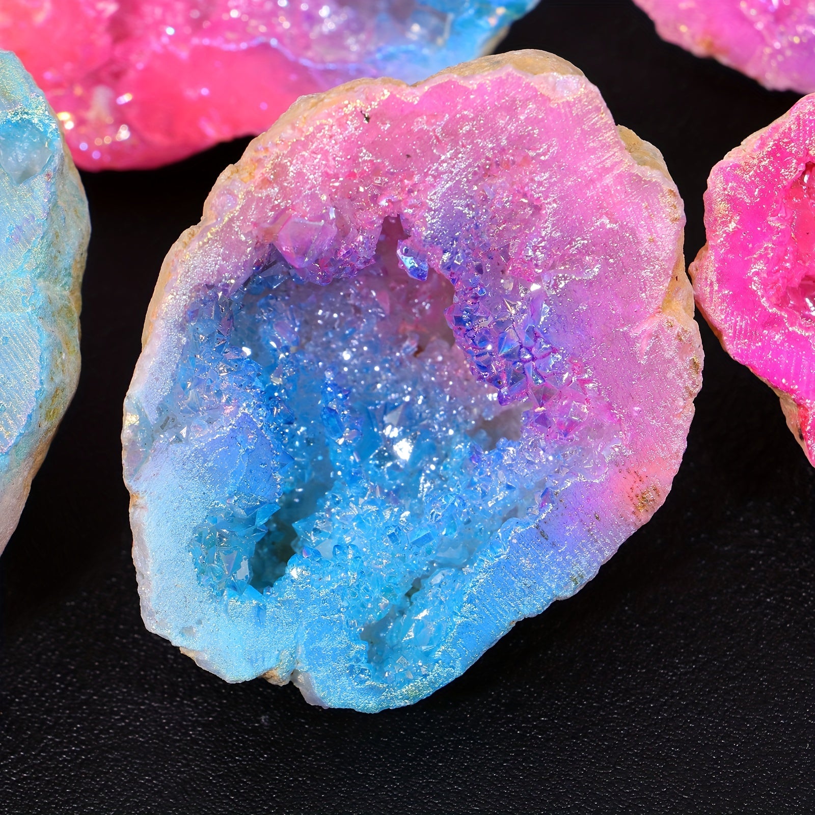 This electroplated pink gemstone cluster healing stone ball geode is a beautiful addition to your crystal collection. Each ball features a unique cluster of pink gemstones that radiate healing energy and positivity.
