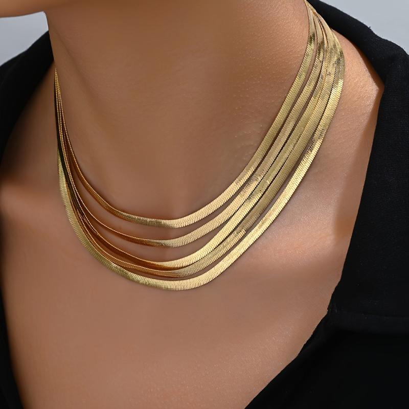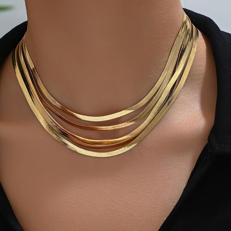 Elegant snake chain necklace made of iron with a plating layer, perfect for all seasons. Versatile choker that suits daily fashion.