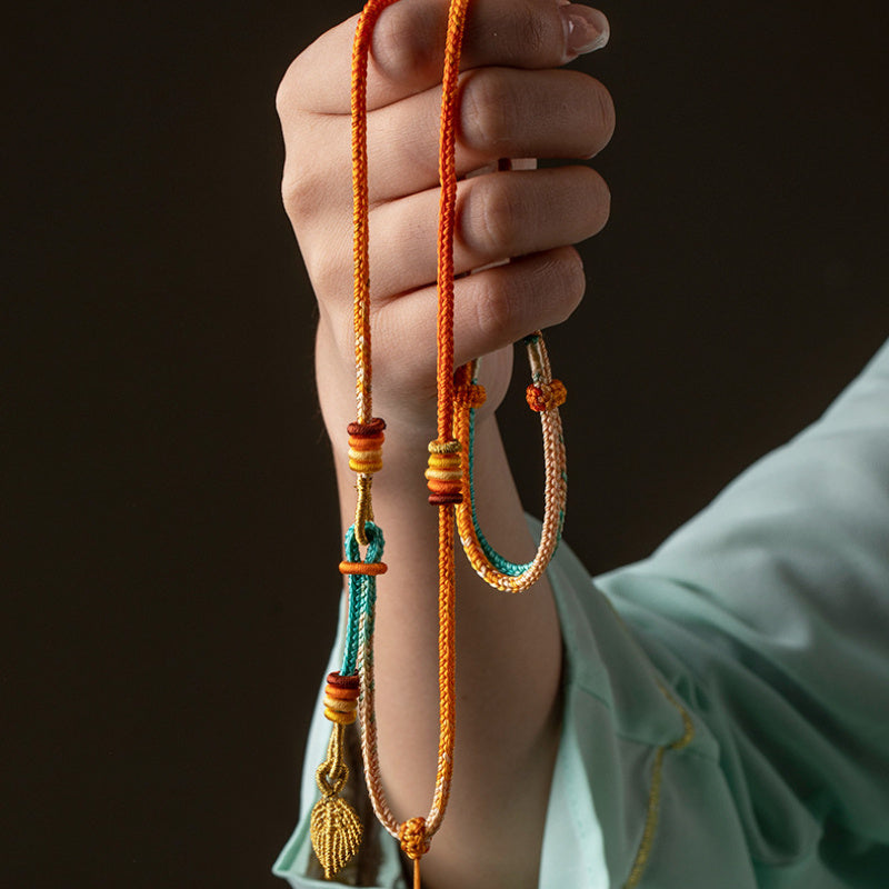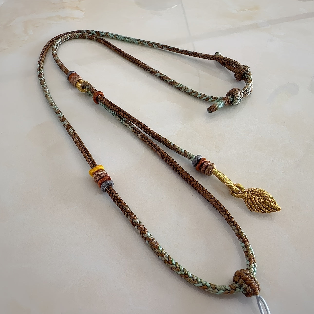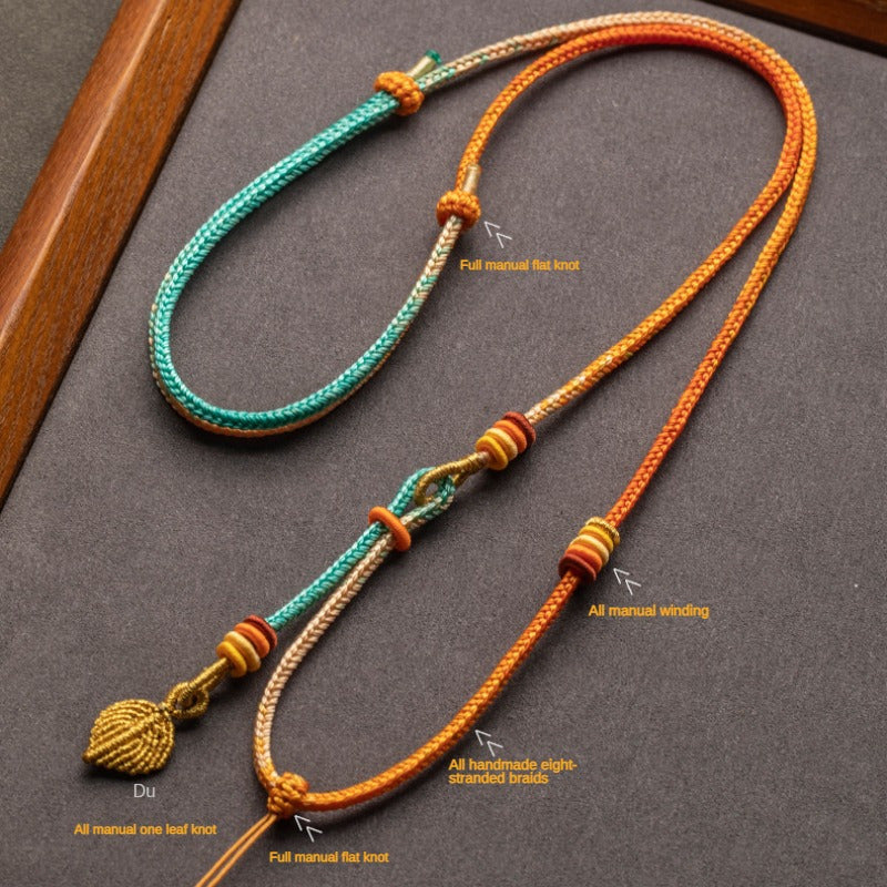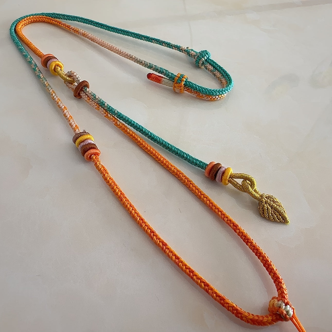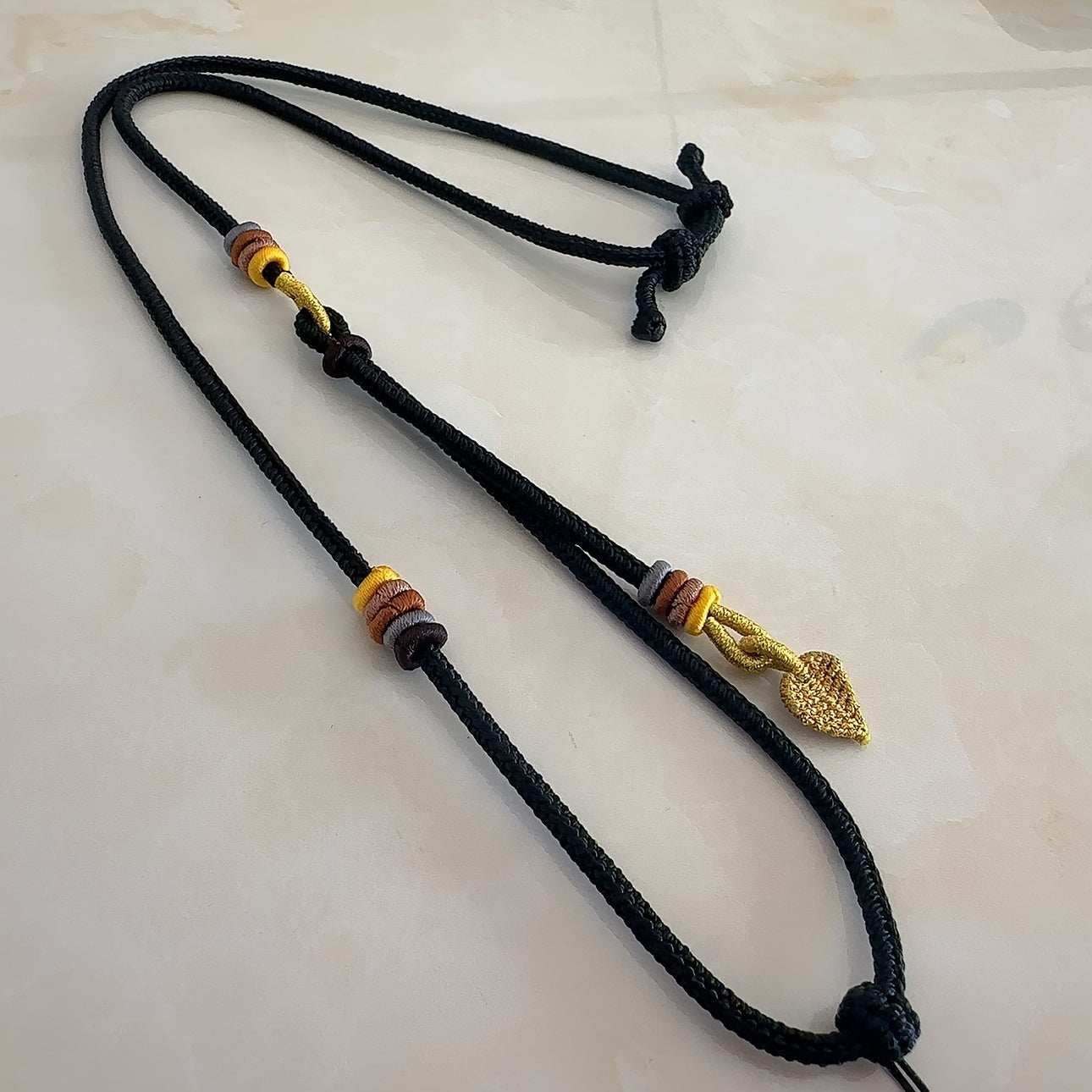 This unique charm necklace features a double hanging leaf knot pendant on an adjustable rope. It is a non-elastic jewelry accessory that adds a touch of style to any outfit.