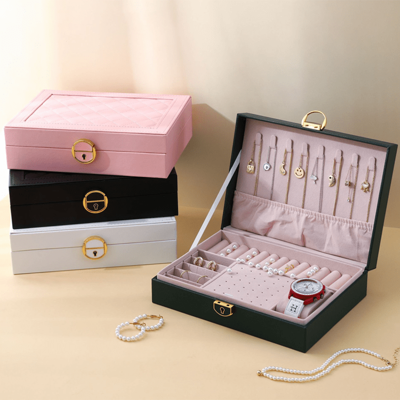This portable layer jewelry storage box is perfect for keeping your rings, earrings, and watch organized and protected. The bag is compact and easy to carry, making it ideal for travel and everyday use.