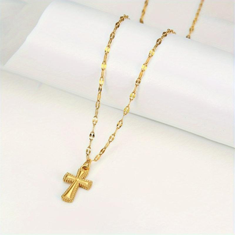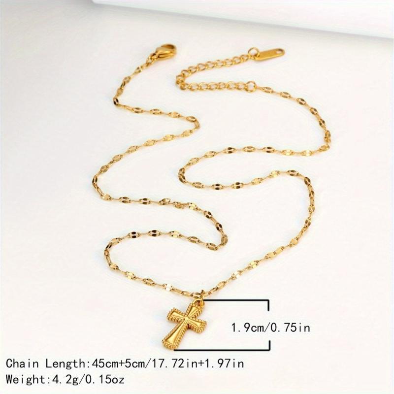 Make a statement with this edgy cross pendant necklace featuring a punk French style design. Crafted from stainless steel with 18K golden plating, this adjustable chain necklace is the perfect holiday gift or everyday jewelry piece.