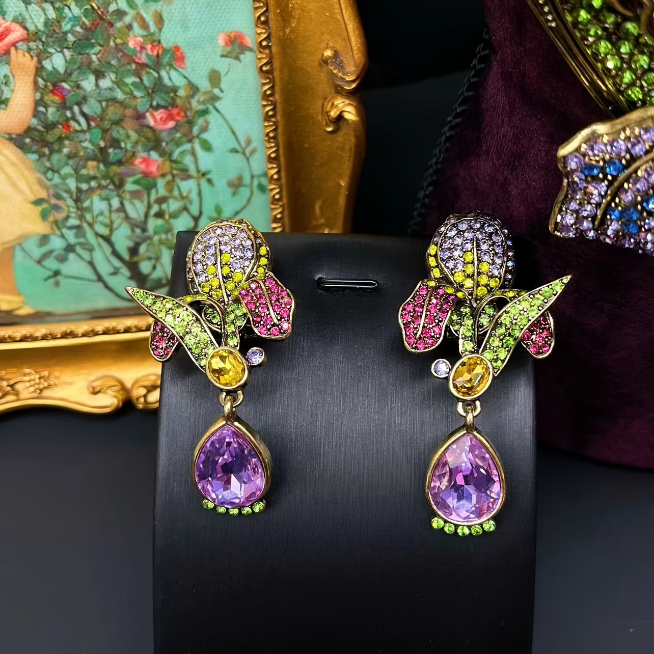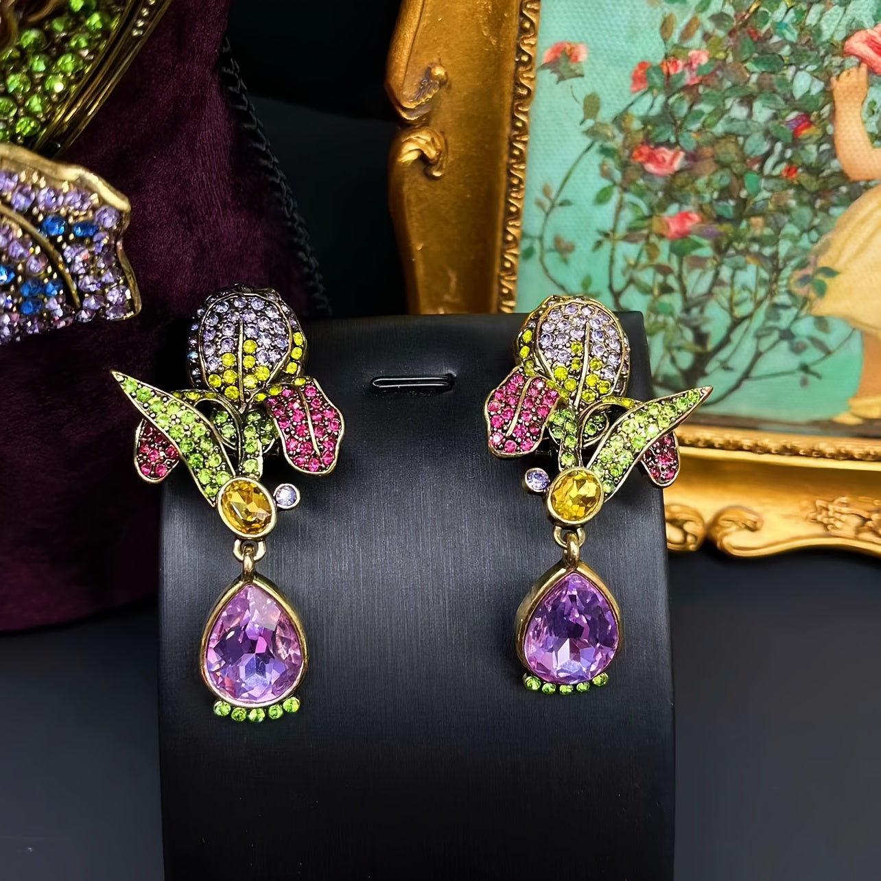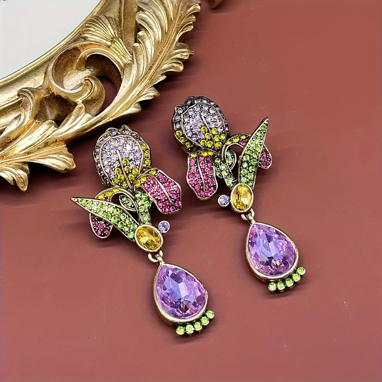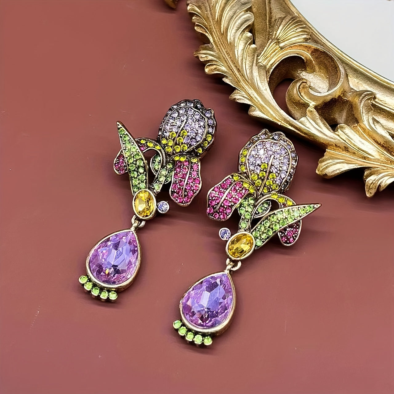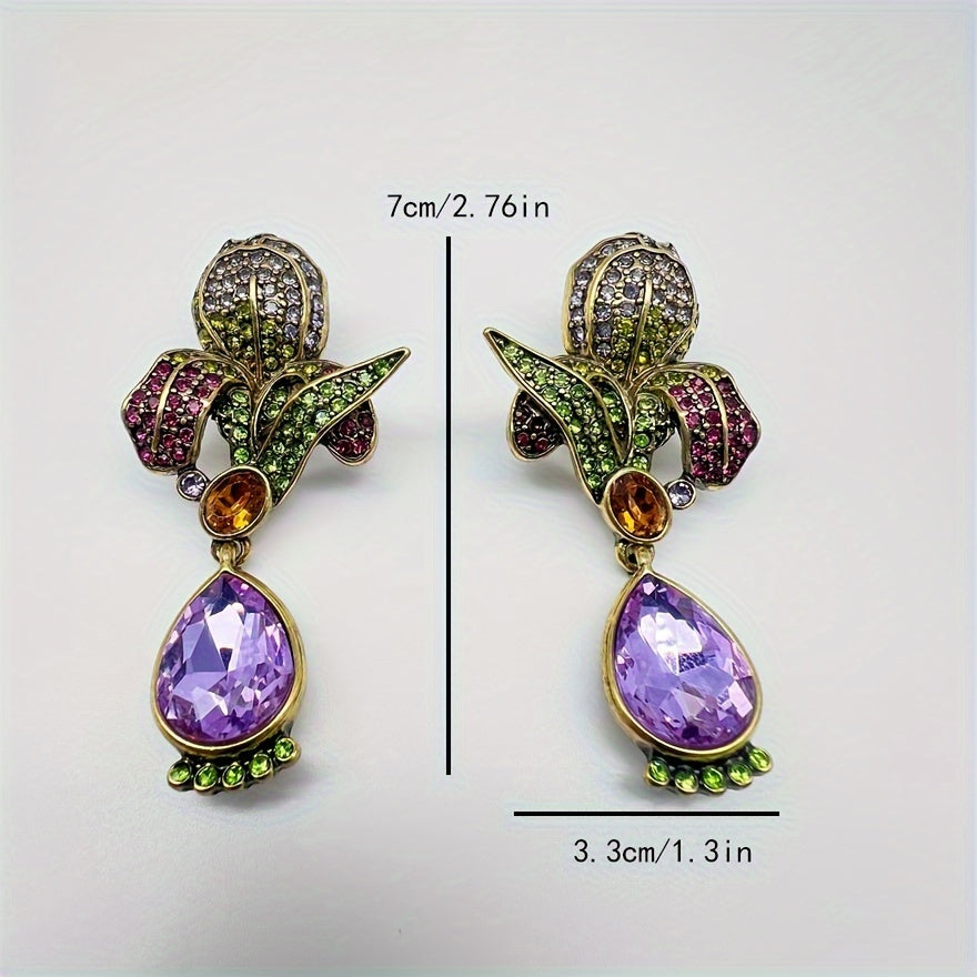 Add a touch of retro flair to your outfit with these charming purple flower dangle earrings. Perfect for daily wear, festive occasions, and banquets.