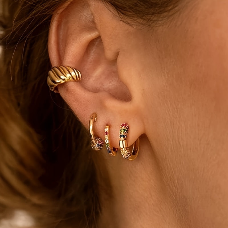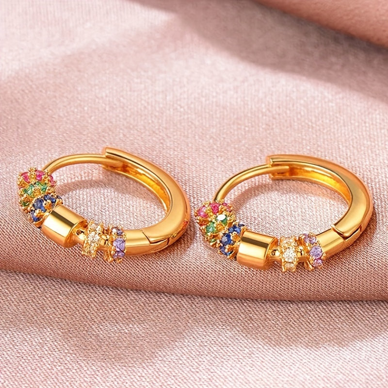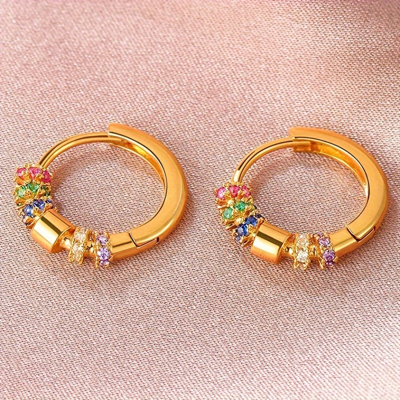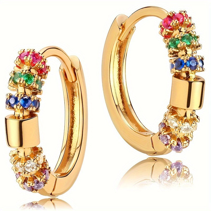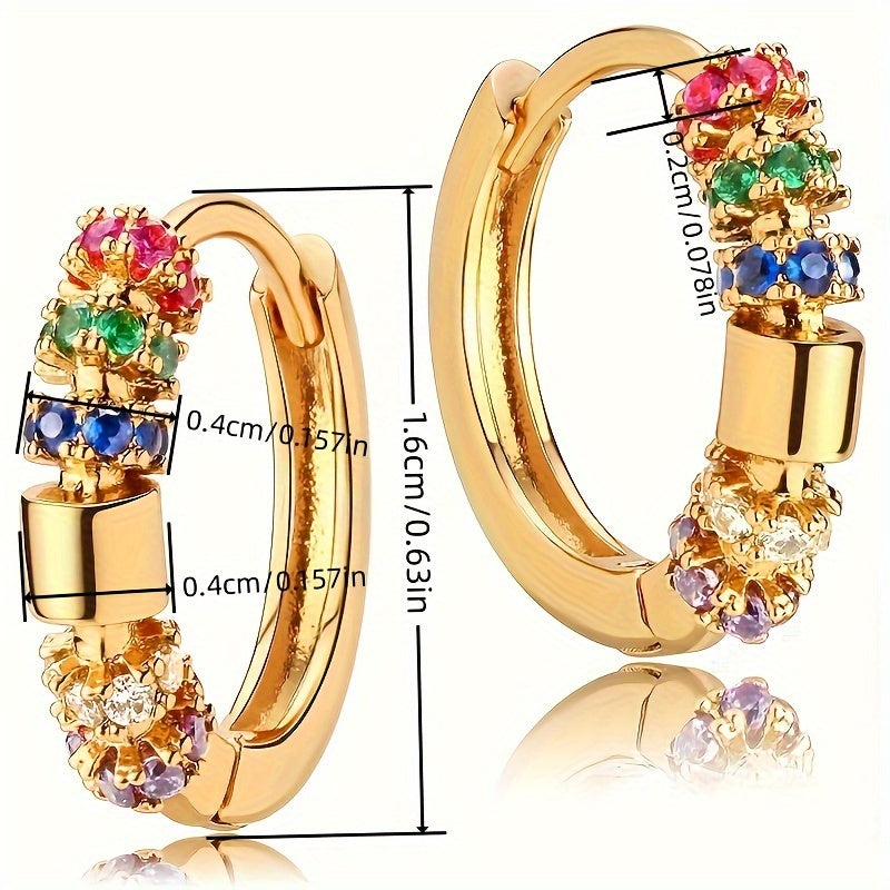 Elevate your look with these multicolored cubic zirconia hoop earrings. Made of high-quality copper with KC golden plating, these earrings are perfect for daily wear or parties. Add a touch of elegance and sparkle to your outfit with these French-style earrings.