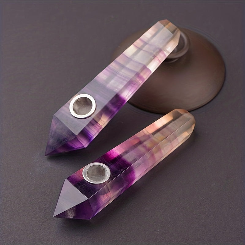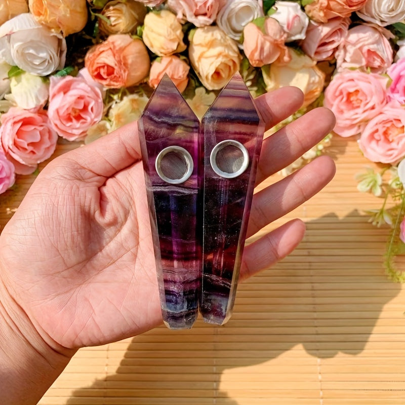 Experience the energy healing and purification properties of natural rainbow fluorite crystal in this unique pipe. Perfect for Father's Day gift!