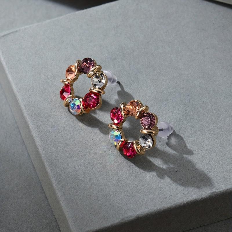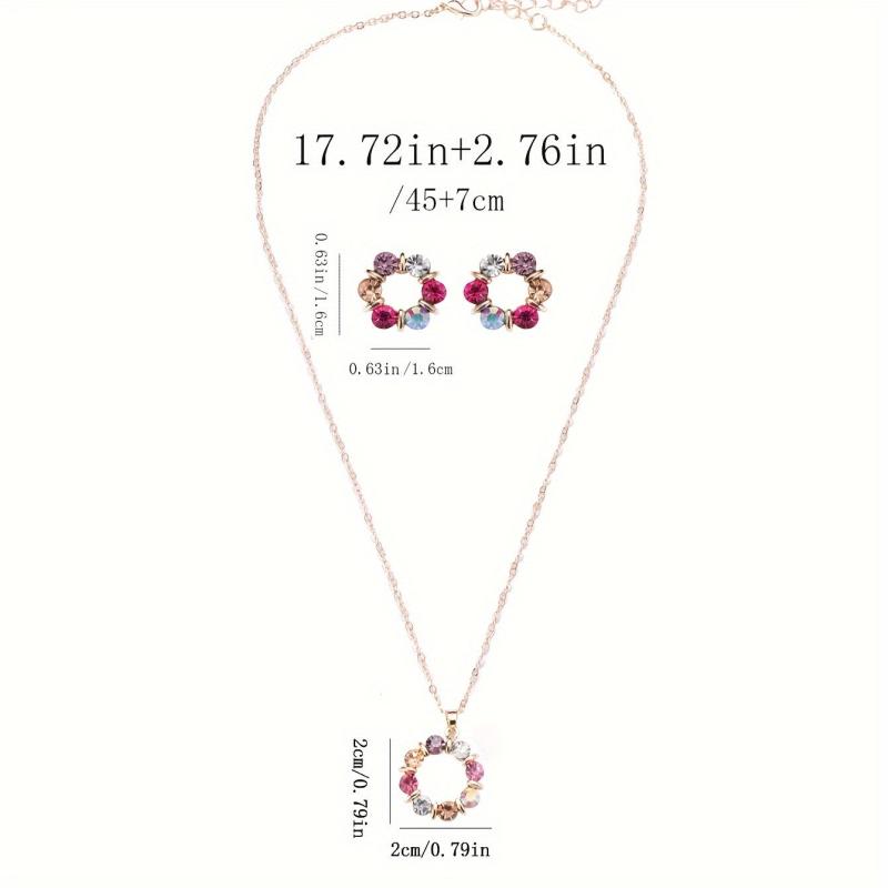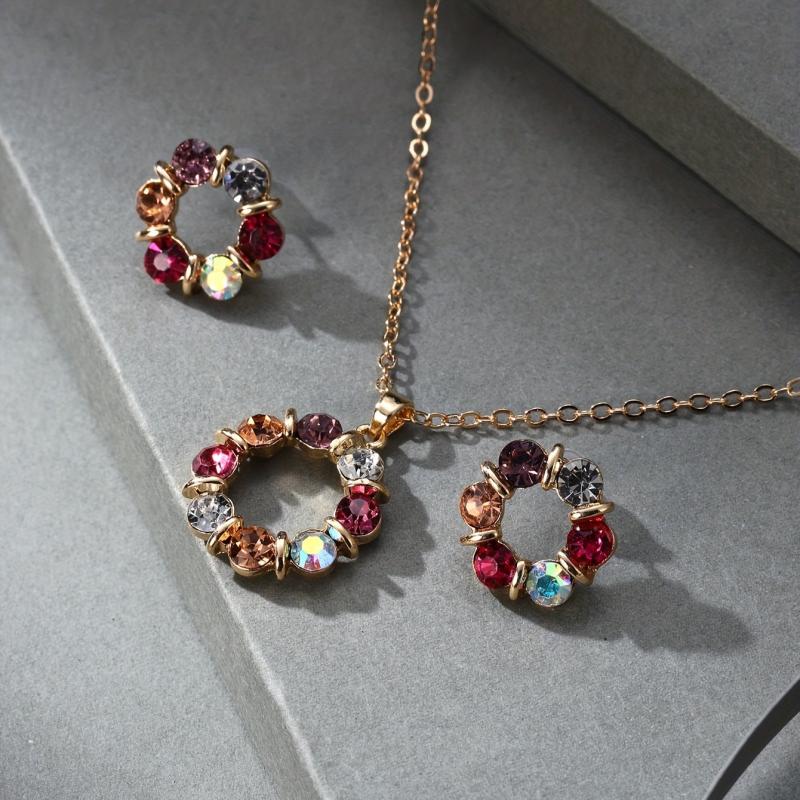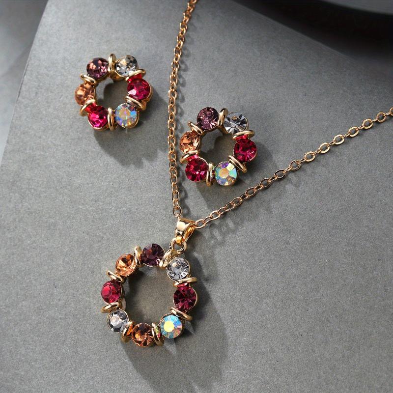 Add a touch of color and sparkle to your look with this round shape rainbow rhinestones jewelry set. Perfect for gifting or adding a pop of fun to any outfit.