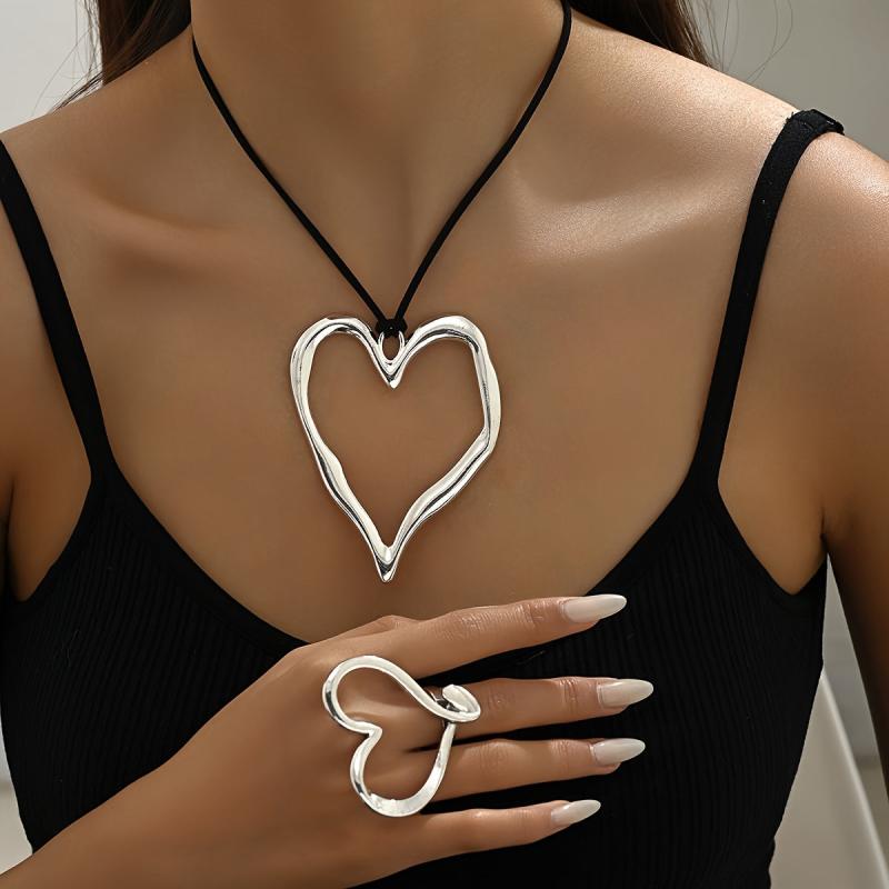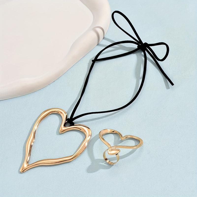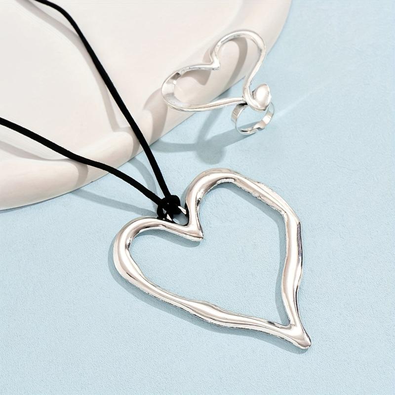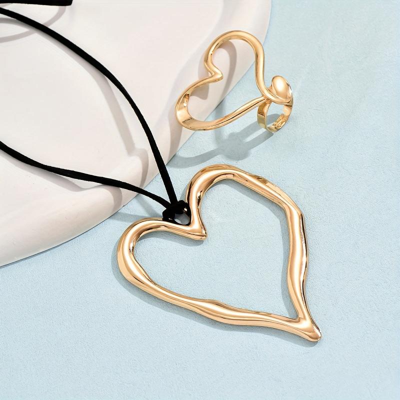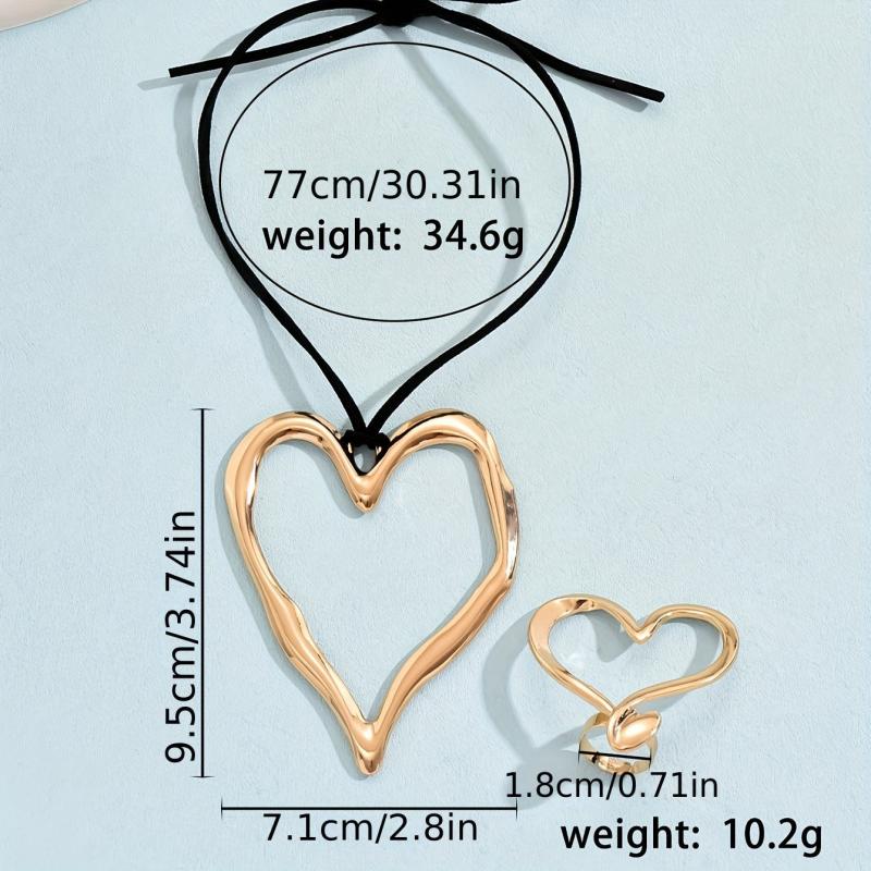 Add a touch of retro style with this exaggerated heart necklace & metal velvet collar set. Perfect for everyday wear or party outfits.