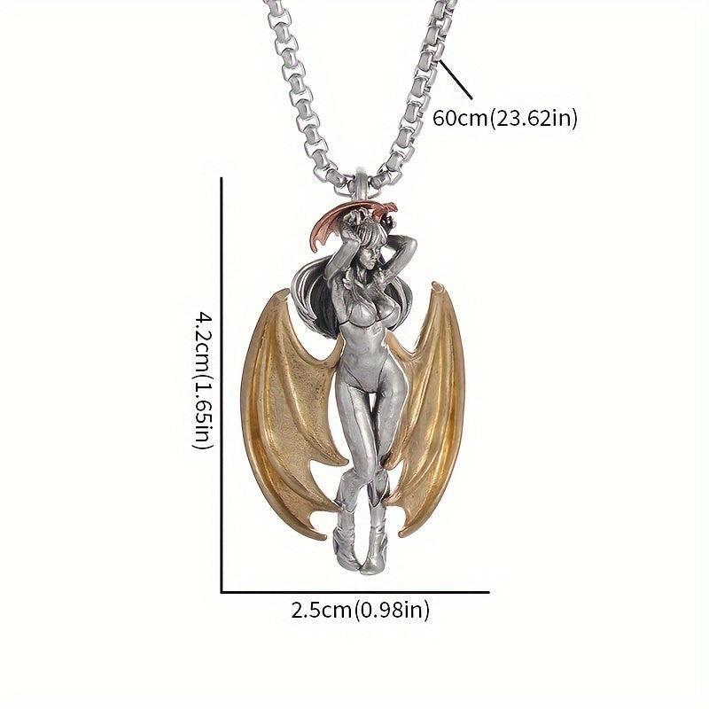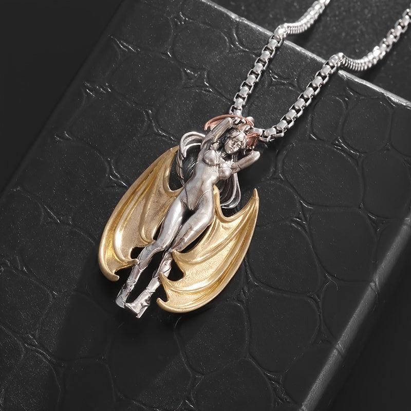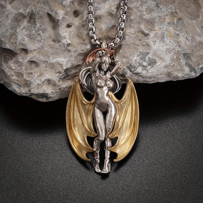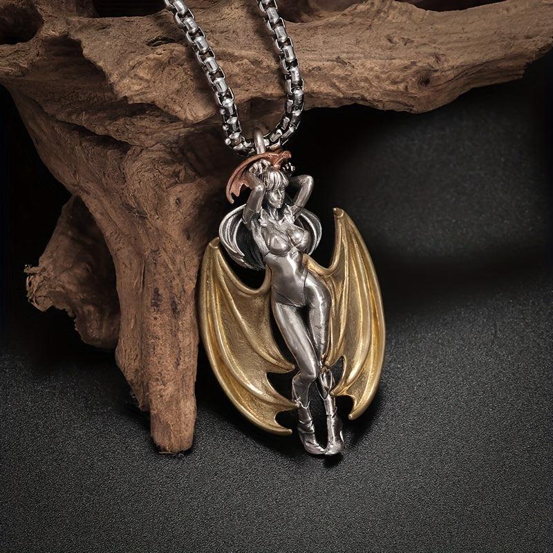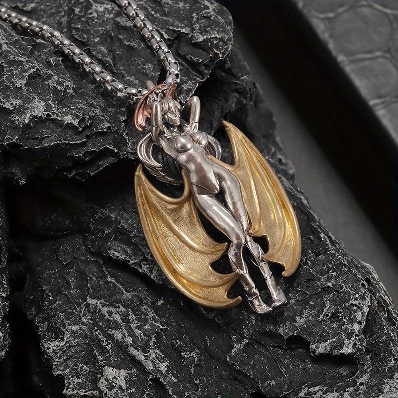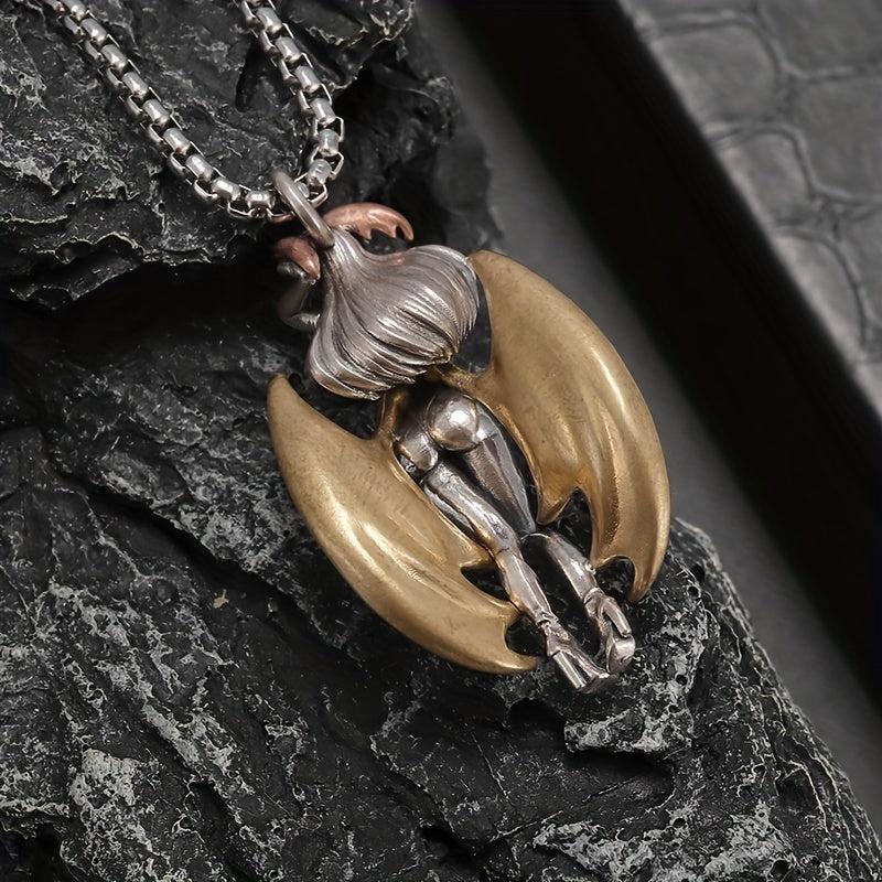 This stylish pendant necklace features a retro wings design, perfect for men and women. Ideal for parties, rock events, and as a couple's gift.