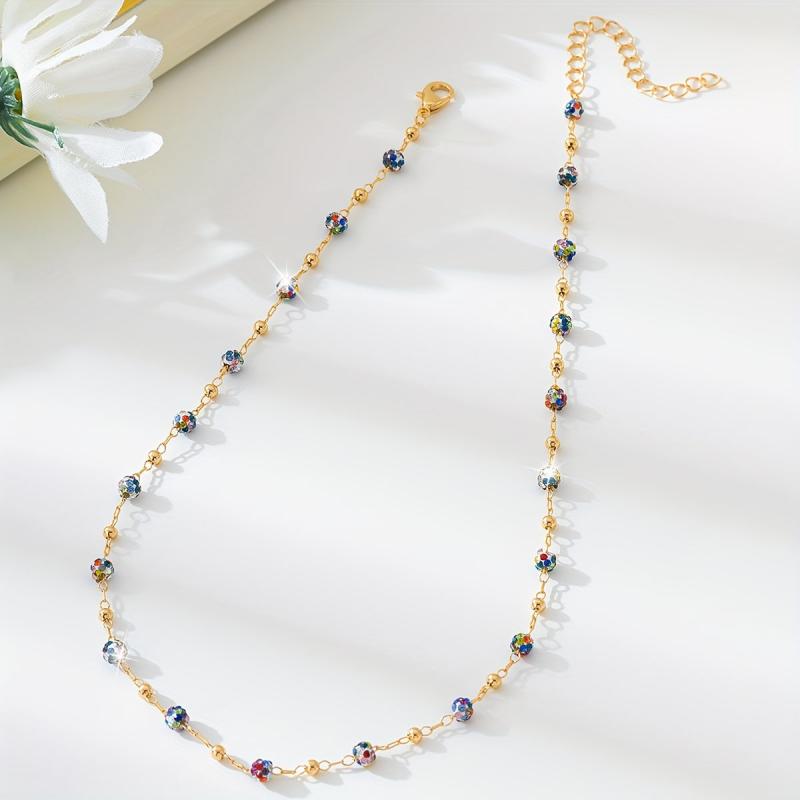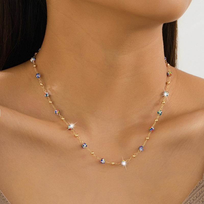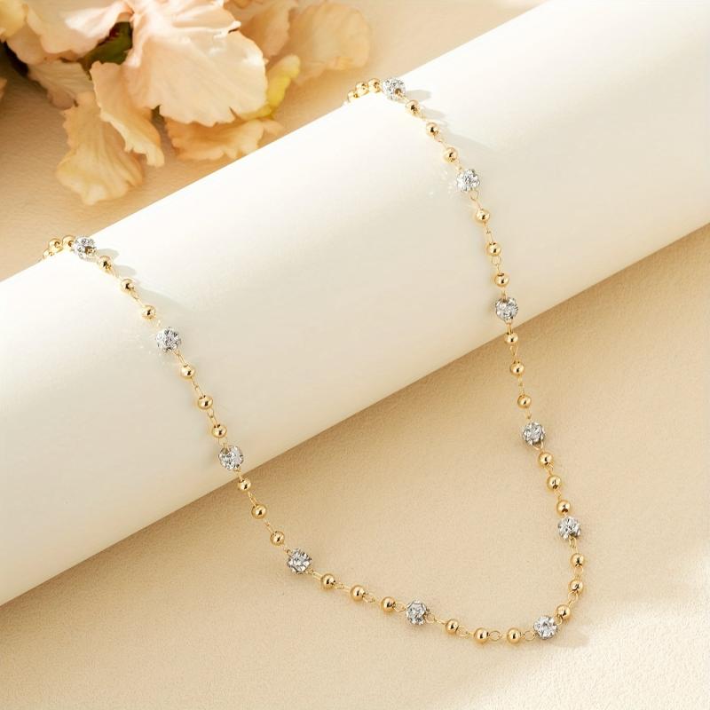Elegant and charming necklace perfect for daily wear, featuring rhinestone ball chain with golden bead spacer.