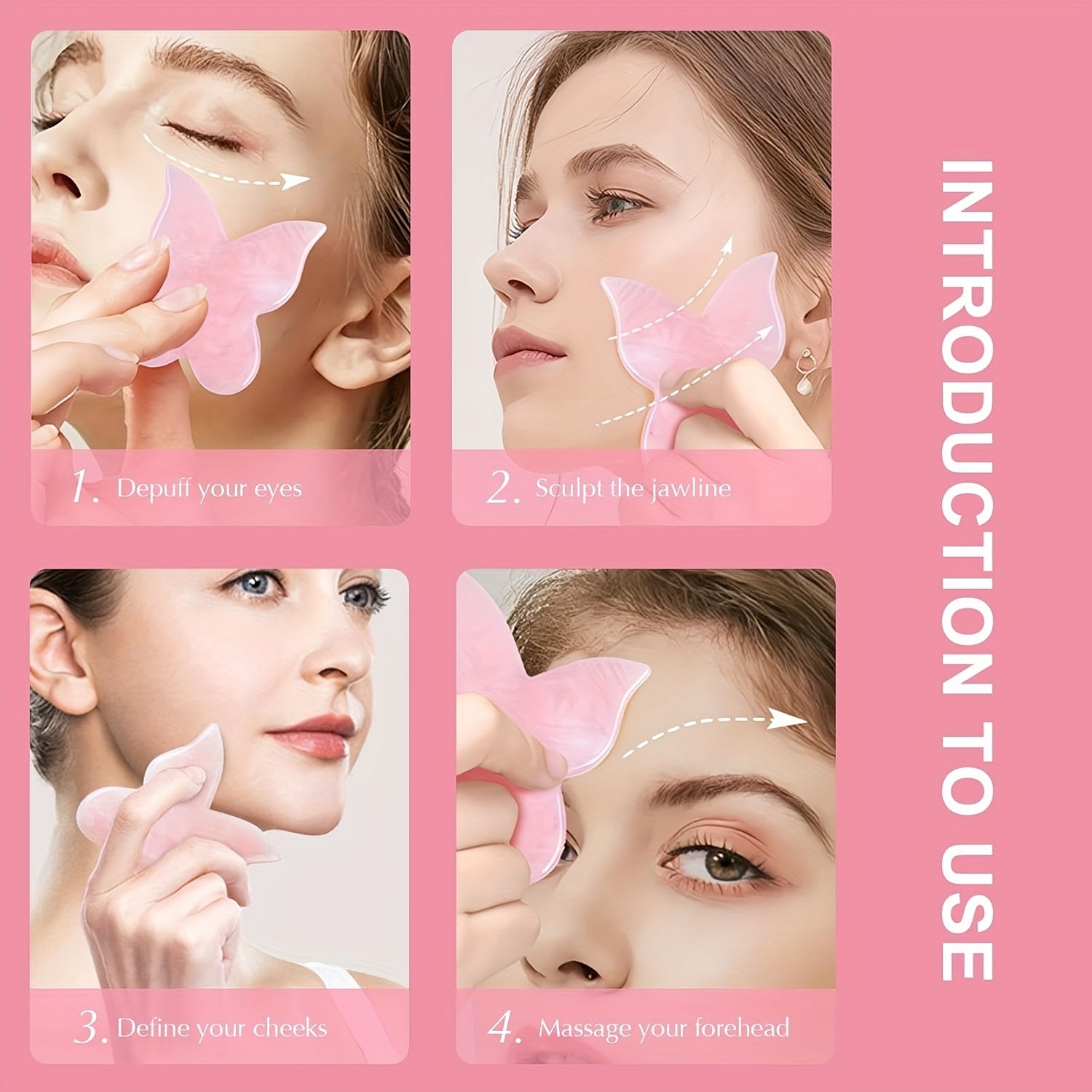 Rose Quartz Butterfly Gua Sha Massage Tool for Facial Lifting & Tightening