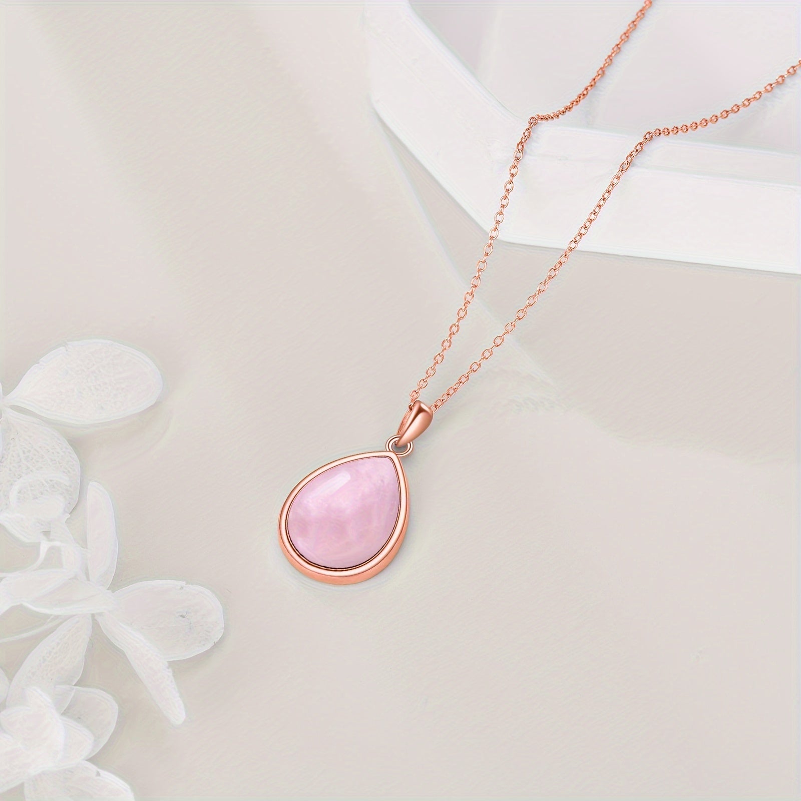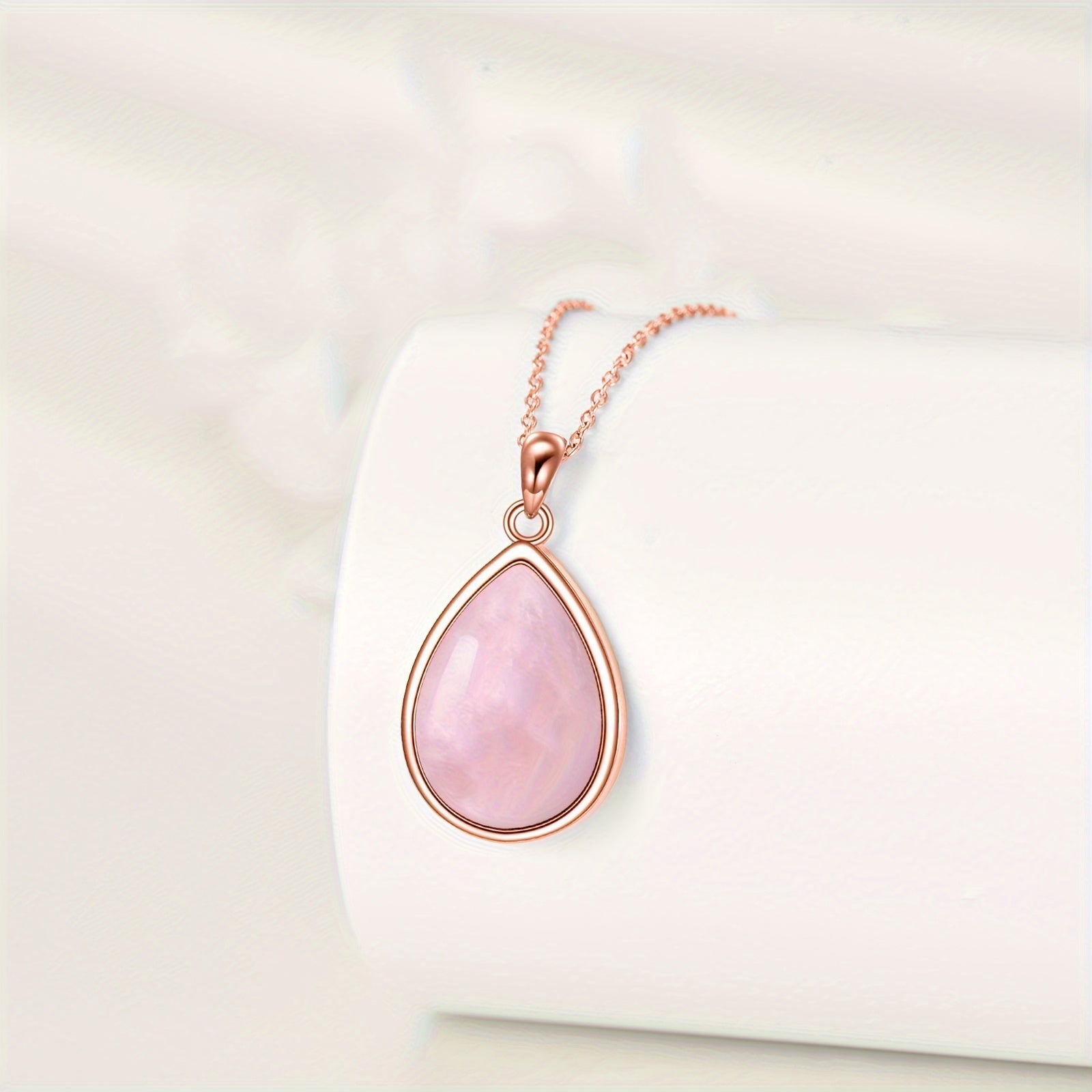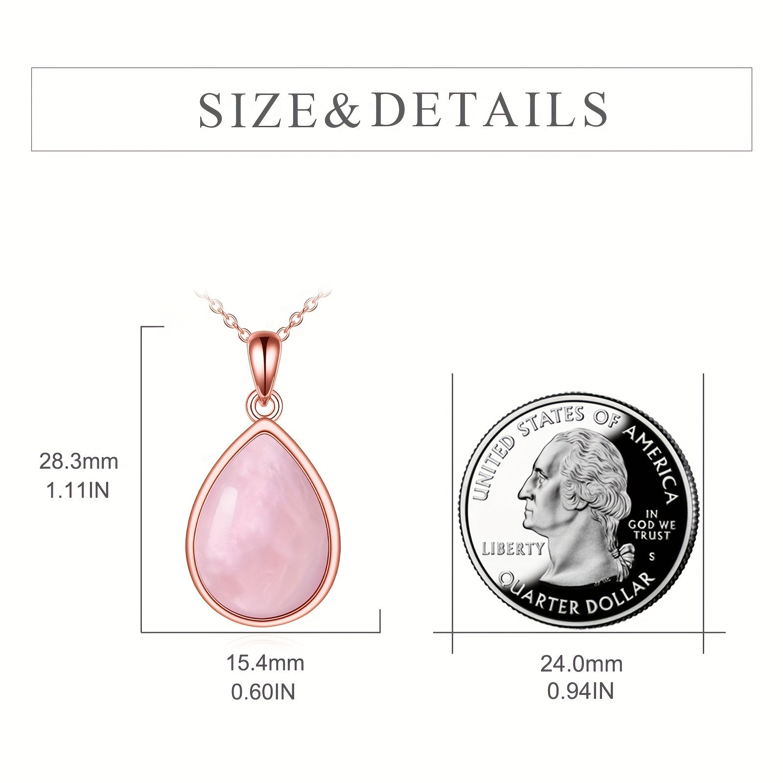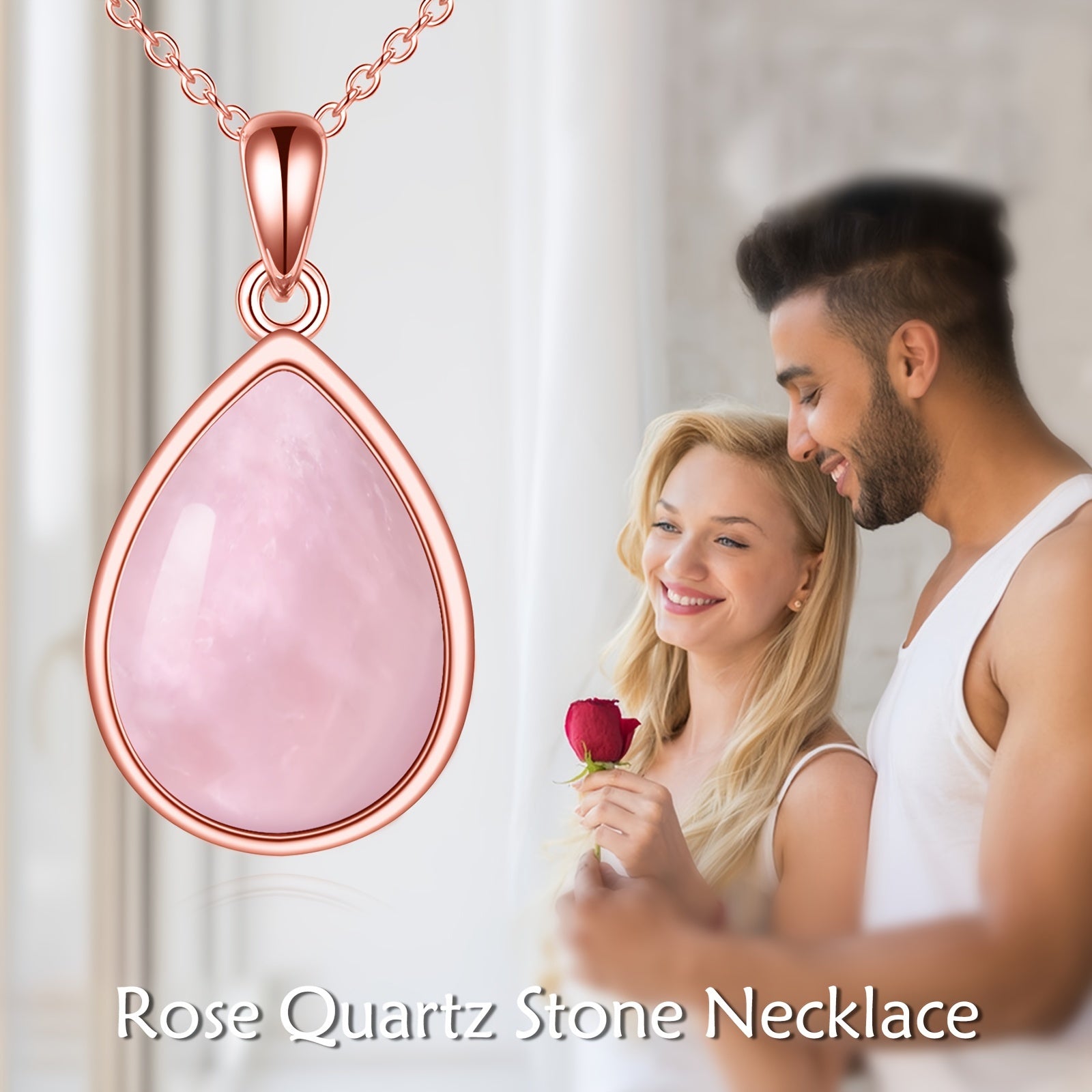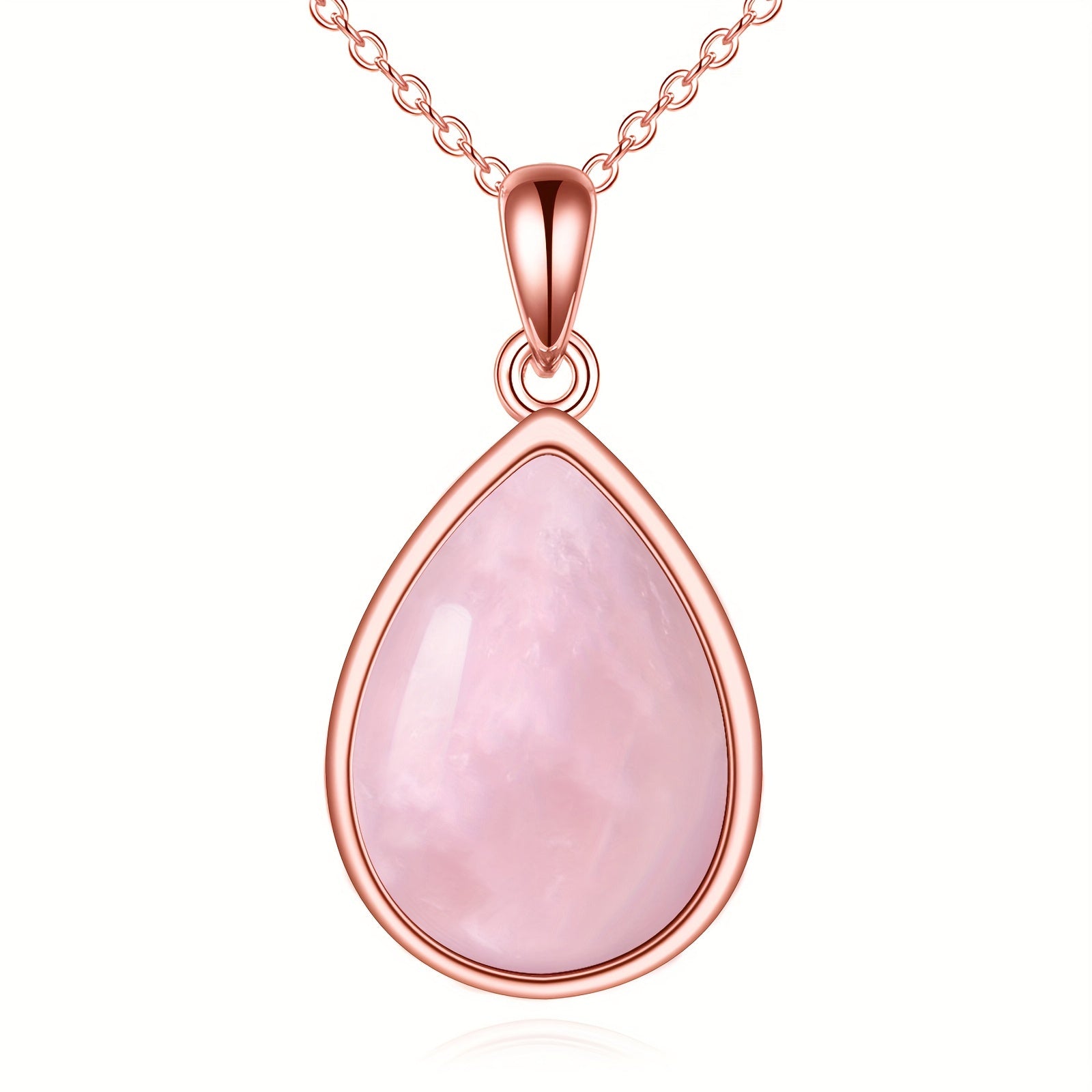 Enhance your outfit with this elegant rose quartz teardrop necklace. The pendant is made of pink rose quartz and beautifully crafted in rose golden plated 18 2' sterling silver.