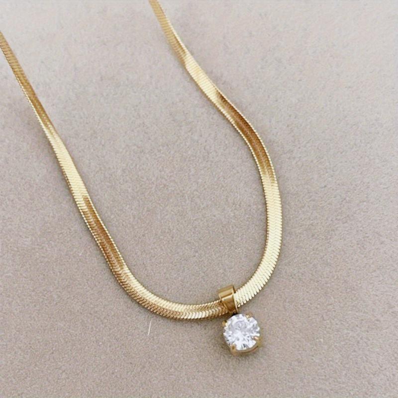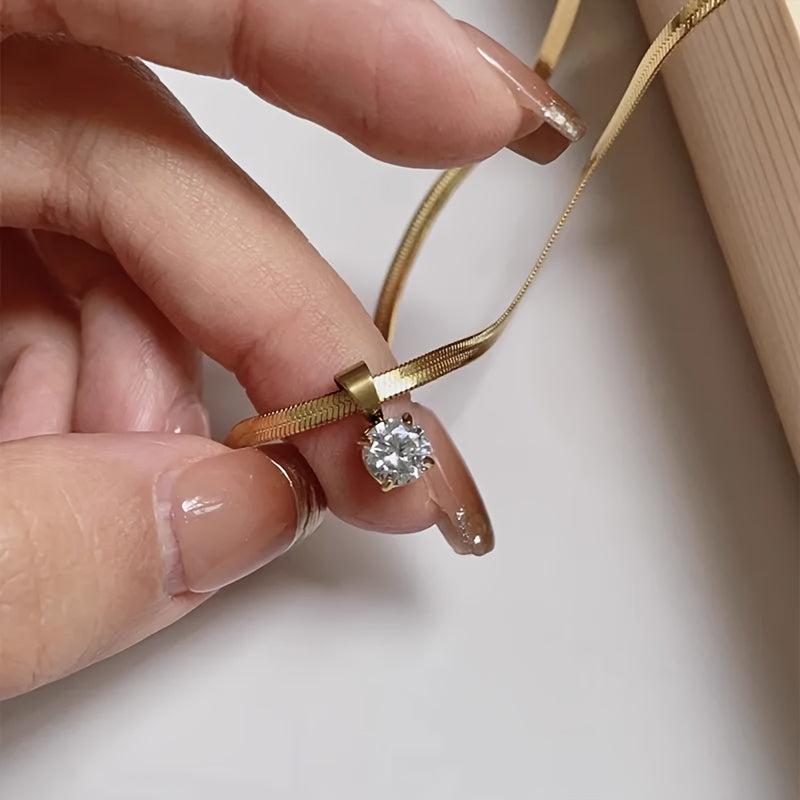 Round Cut Rhinestone Necklace with Stainless Steel Chain