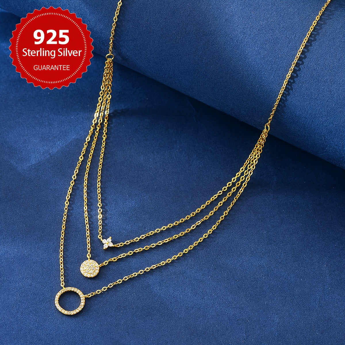 S925 Double Layer Necklace Three Layer Pendant Necklace Women&
