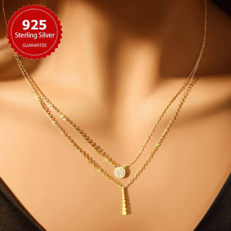 S925 Double Layer Necklace Three Layer Pendant Necklace Women's Jewelry