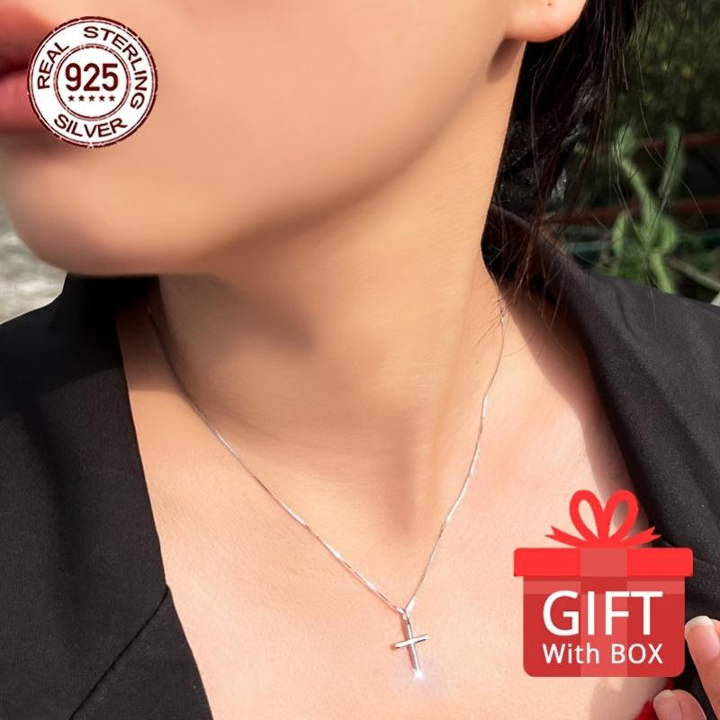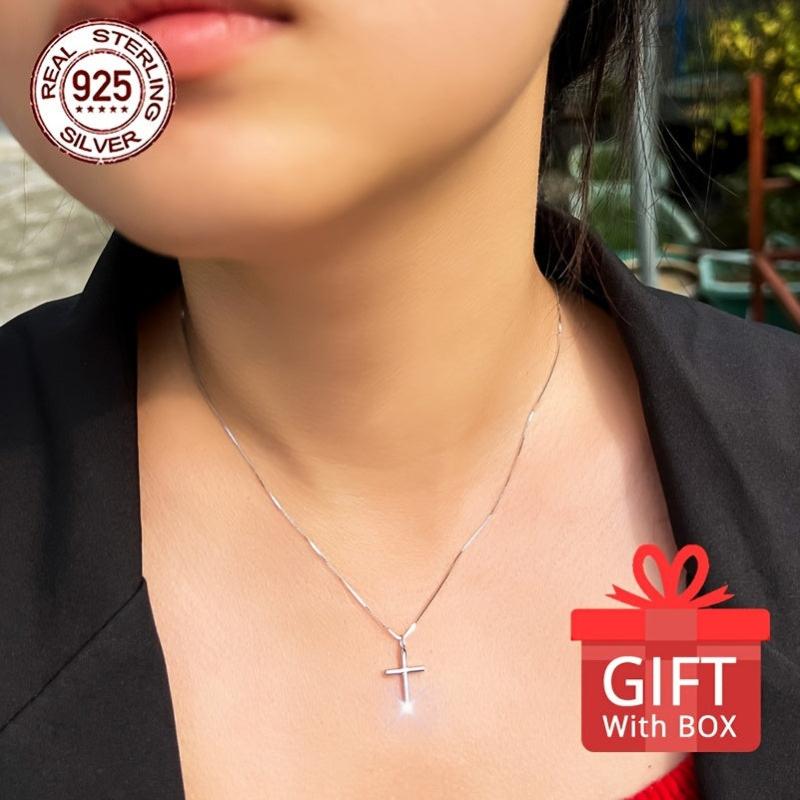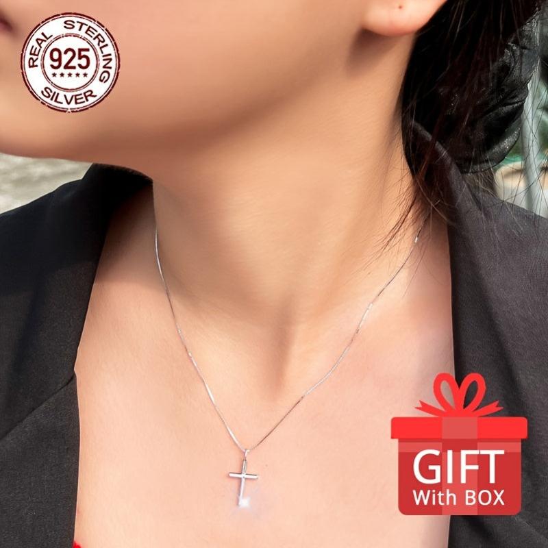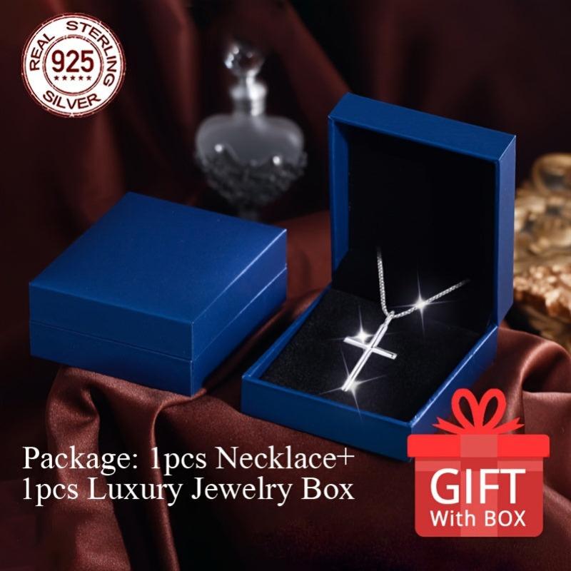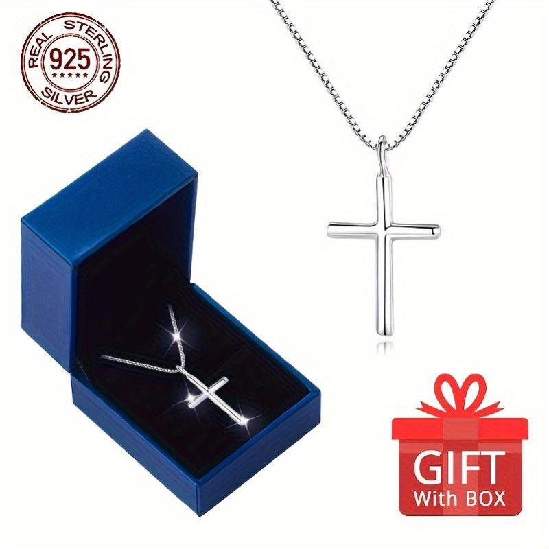 This classic necklace features a low-allergy cross pendant, making it a great gift for both men and women. Made of pure silver, it weighs 14g (0.111oz) and has a glossy finish.