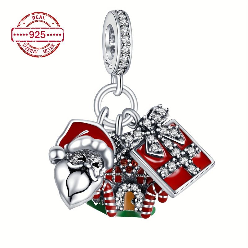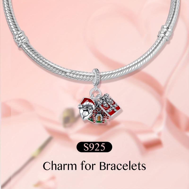 Add some holiday cheer with this sterling silver Christmas Santa's gift charm pendant. Compatible with European moment bracelets and necklaces, perfect for DIY jewellery making.