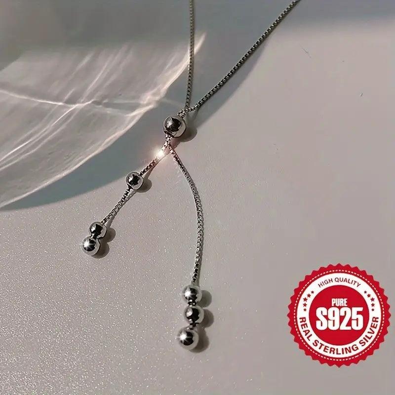 Elevate your style with this minimalist round bead necklace. Crafted from hypoallergenic S925 silver, this adjustable necklace features a retro Y-shaped pull-out pendant. Perfect for holiday wear.