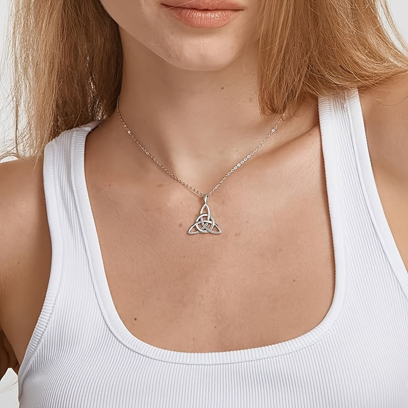 This pendant necklace is made of hypoallergenic S925 silver with a Celtic knot design. It is suitable for daily wear and weighs 3.5g. A perfect gift for any woman who loves elegant jewelry.