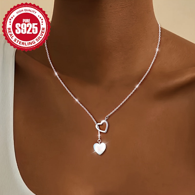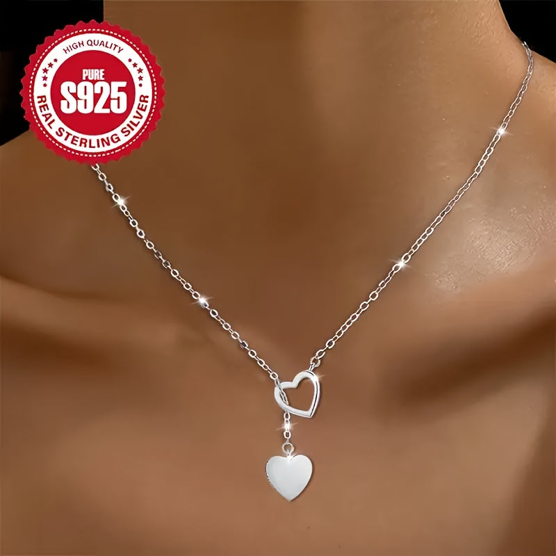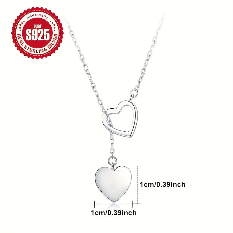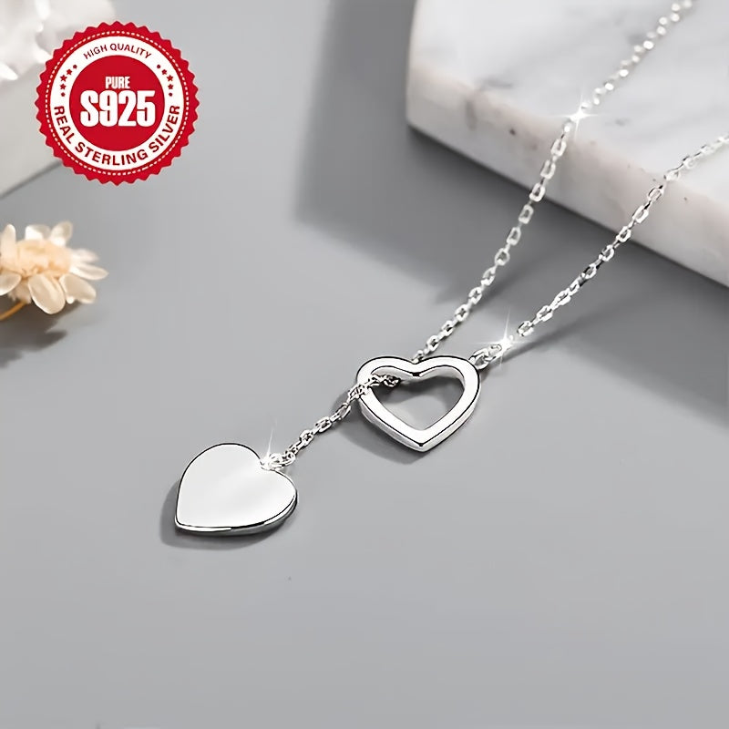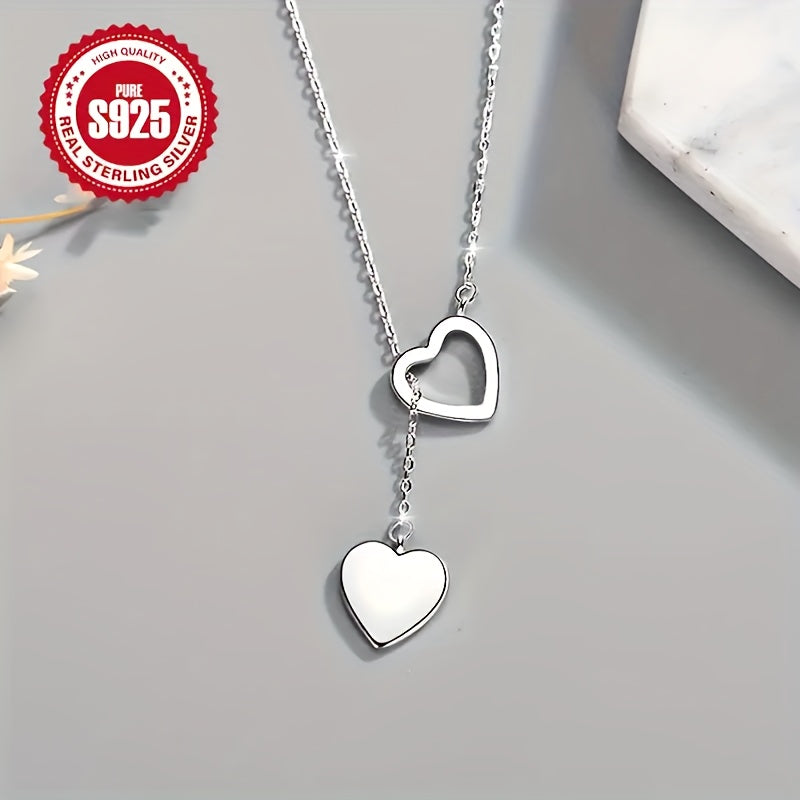 S925 Silver Double Love Heart Pendant Necklace for Women