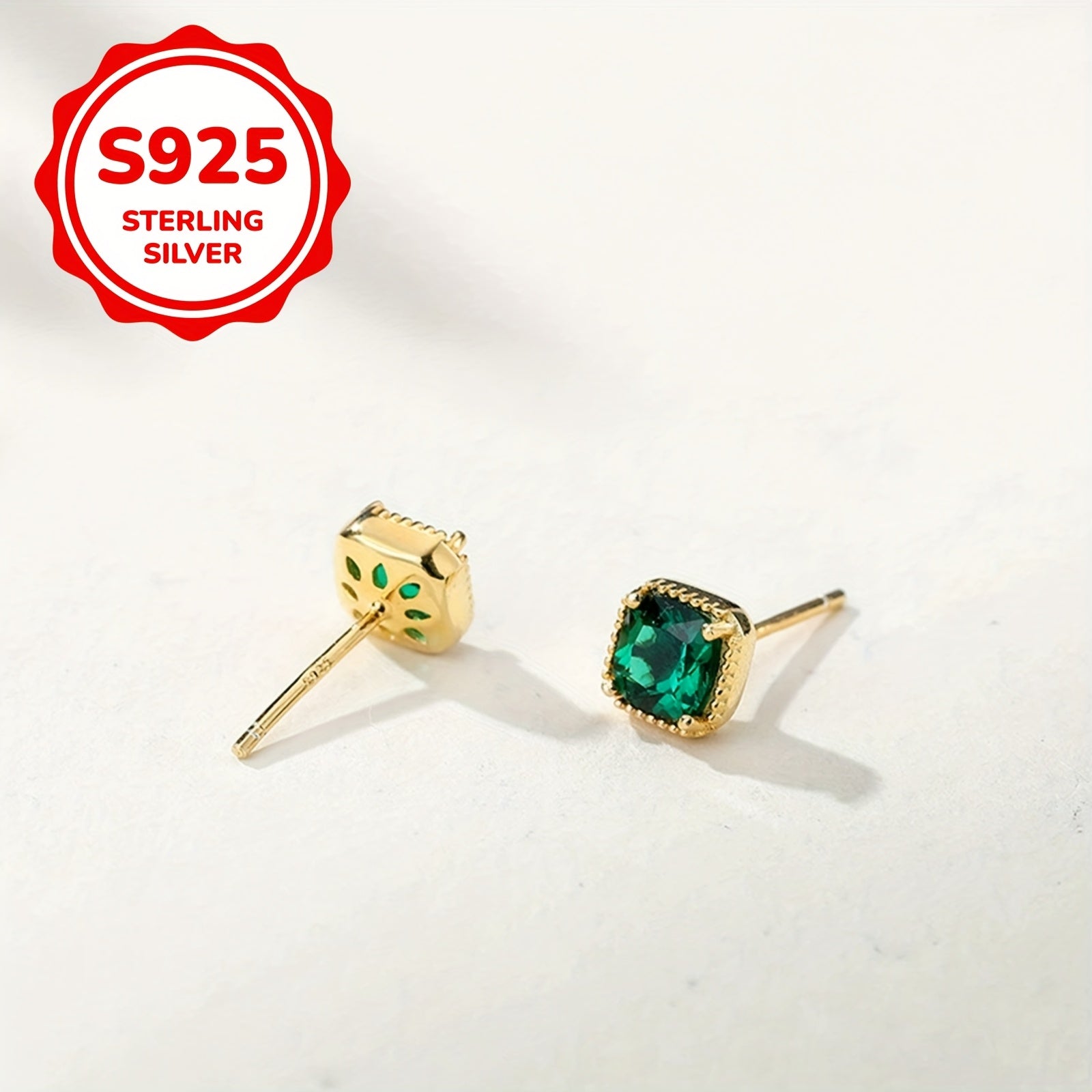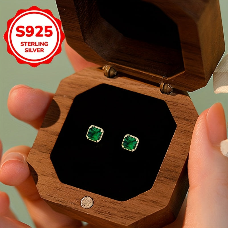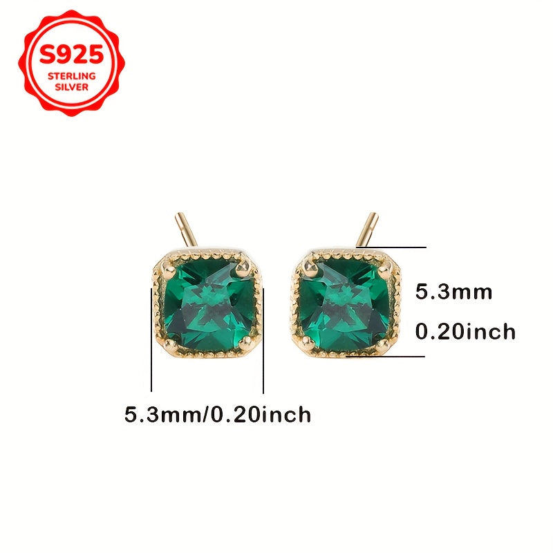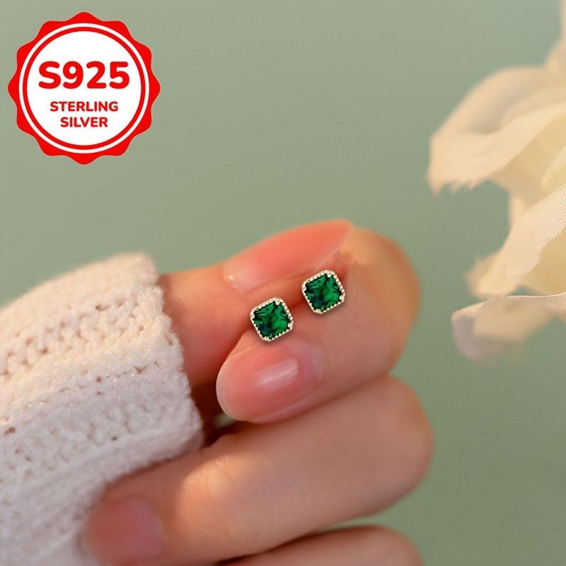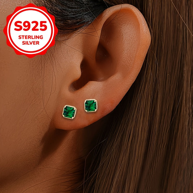 Pair of classic stud earrings for daily wear, ideal for mothers and graduation. Made with synthetic green zirconia in a silver setting.