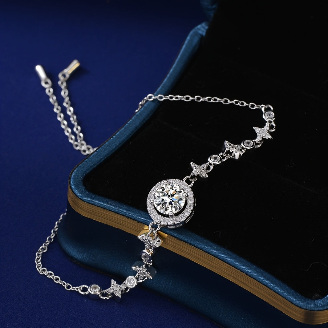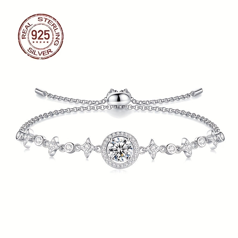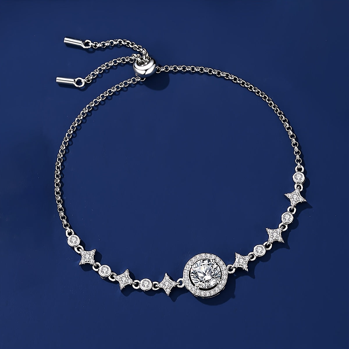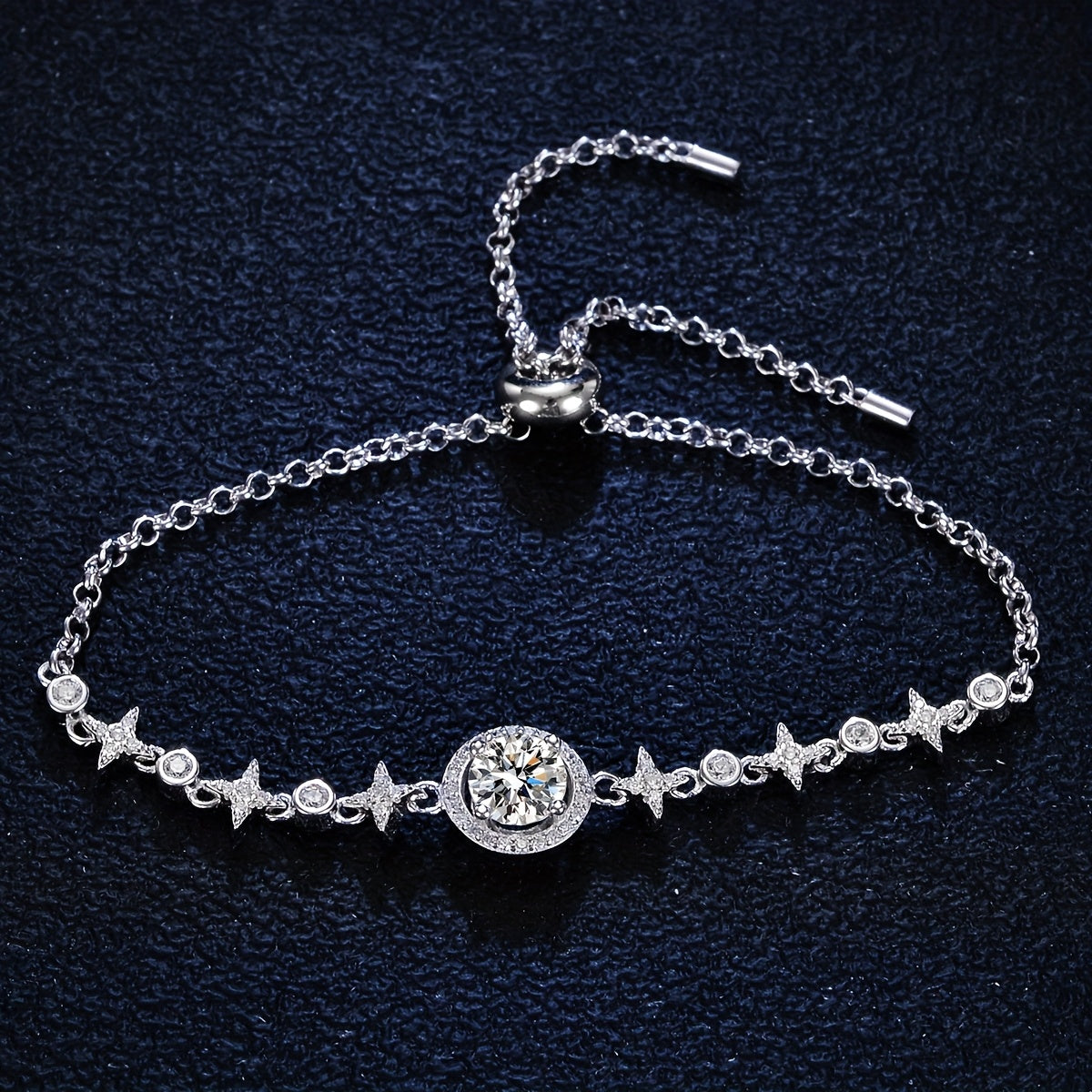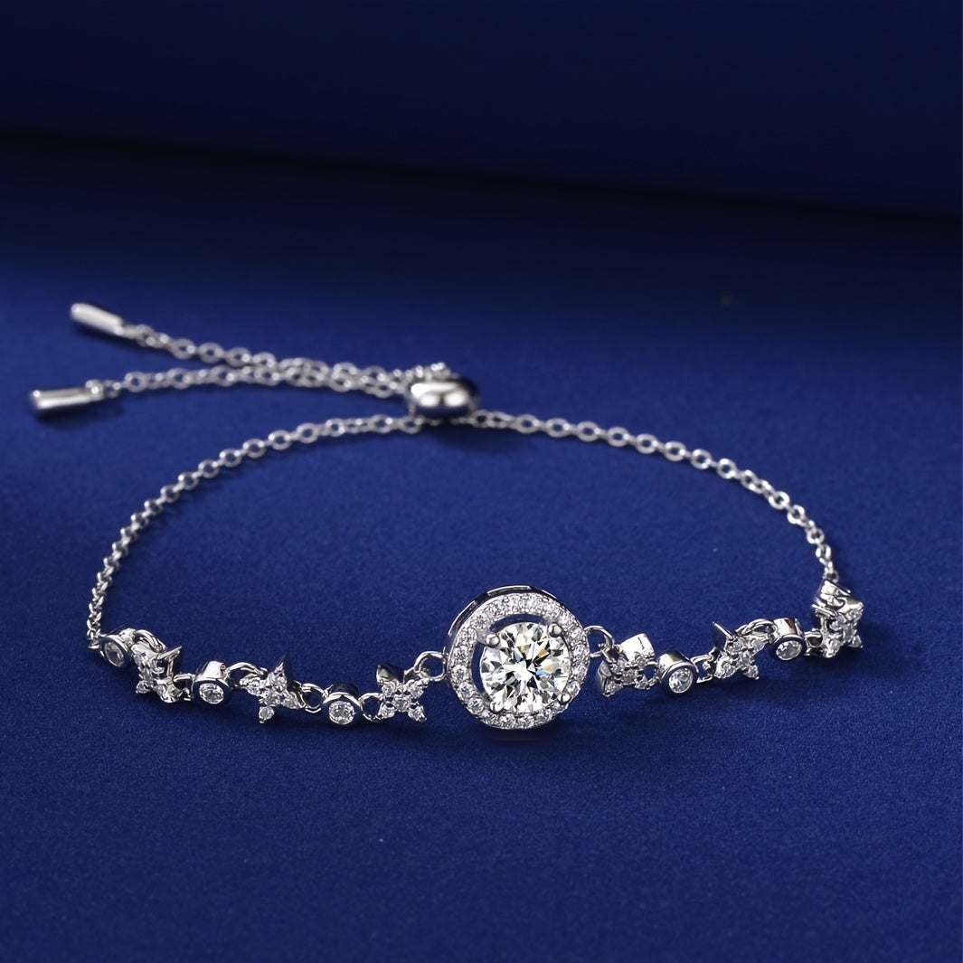 This stunning S925 sterling silver bracelet features a central moissanite surrounded by colorful stars, creating a celestial design that exudes elegance and grace. Perfect for girlfriends.