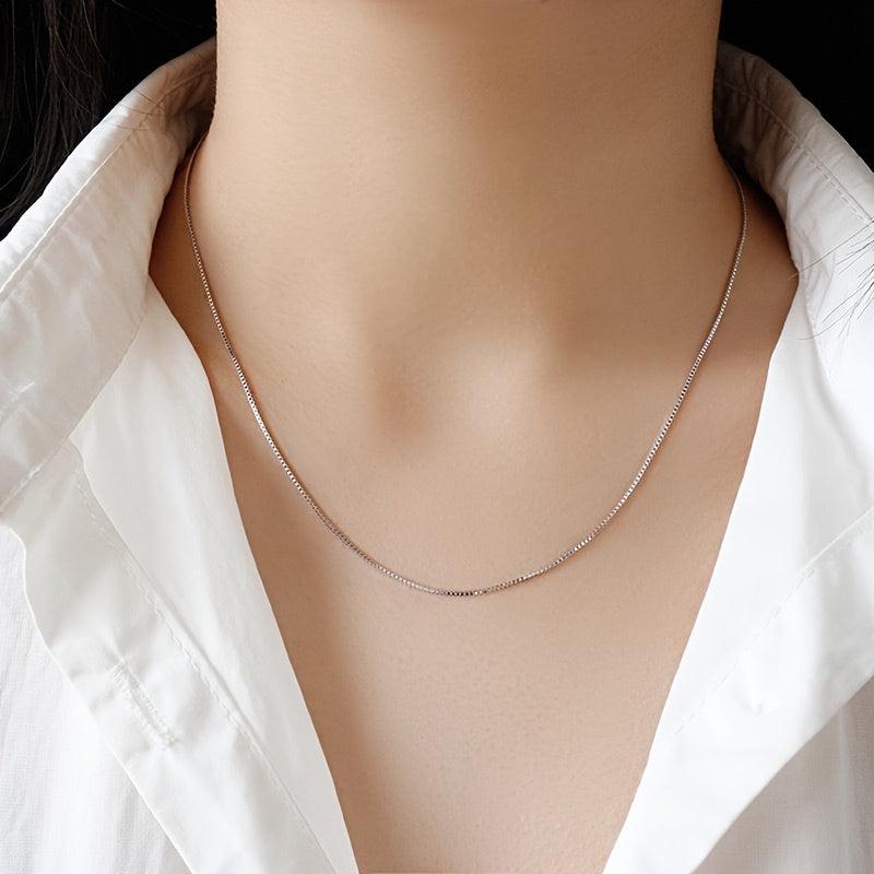This women's necklace is made of S925 silver, weighing 2g. It features a box chain design that is versatile and suitable for casual attire. The necklace is hypoallergenic and compatible with various pendants.