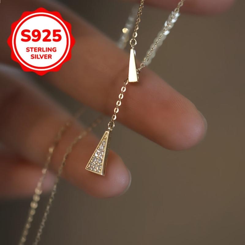 Elegant S925 silver necklace featuring a slim triangle Y-shaped pendant, perfect for accentuating your collarbone.