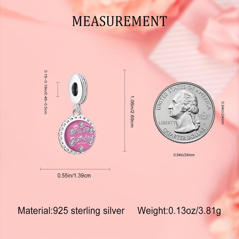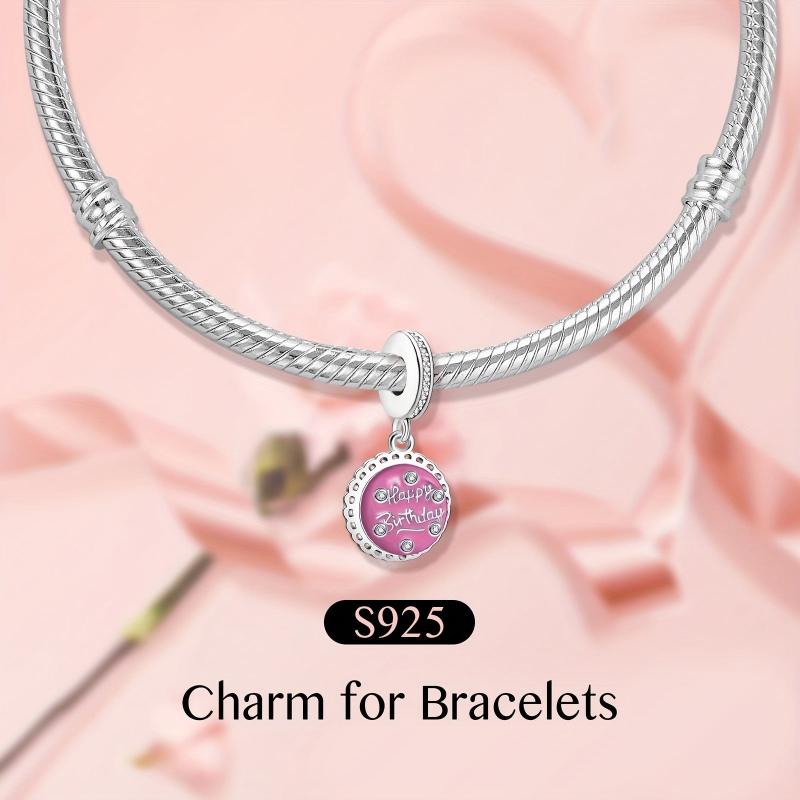 S925 Silver Pink Cake Dangle Charm Pendant for Bracelet & Necklace Gift
