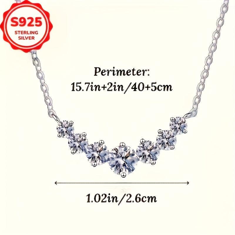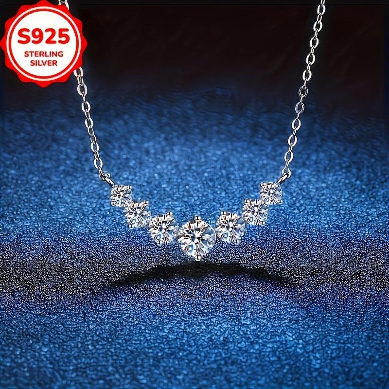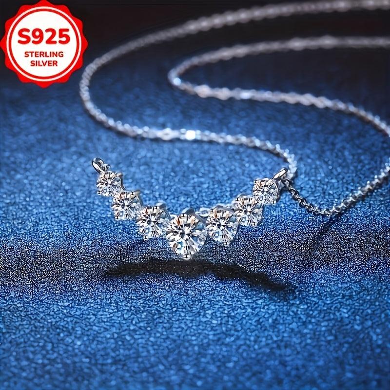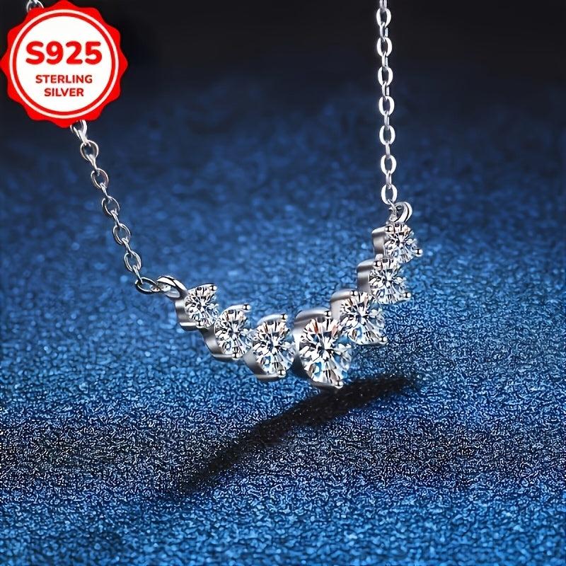Elevate your style with this stunning S925 silver necklace featuring a smile pendant adorned with seven princess cut moissanite stones. A classic and elegant accessory that adds a touch of sparkle to any outfit.