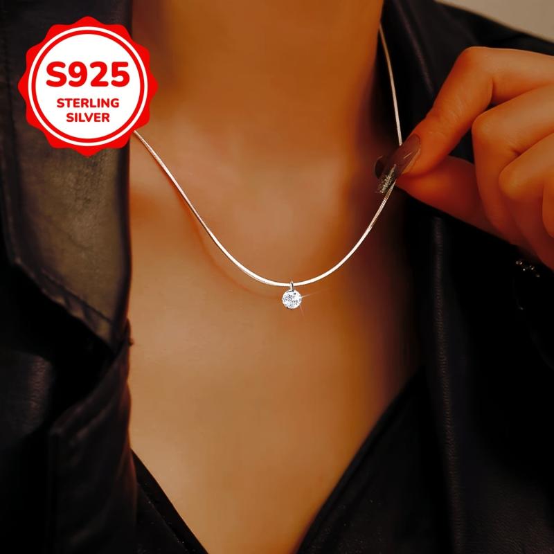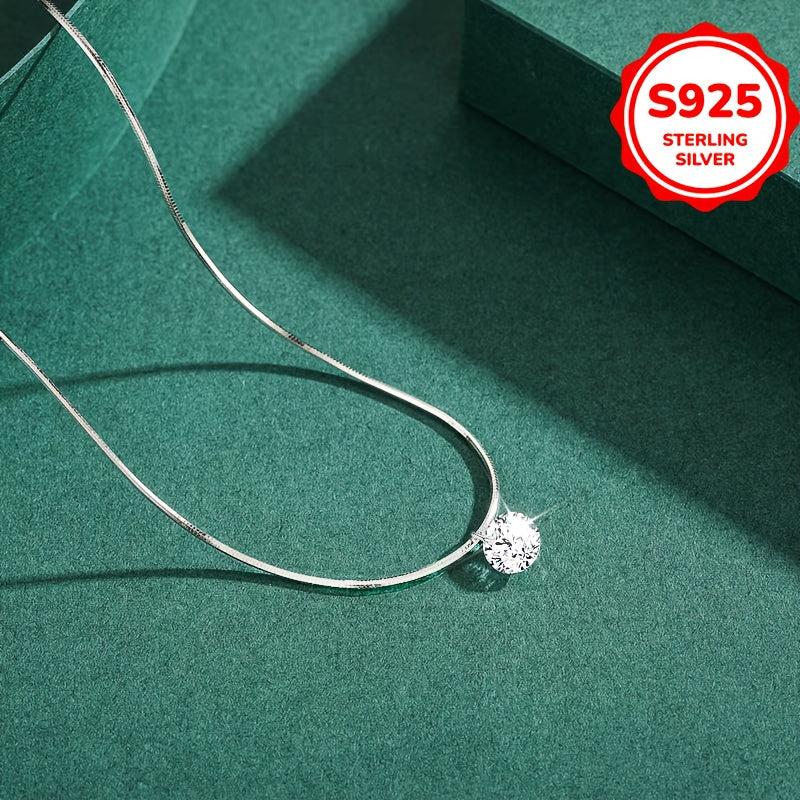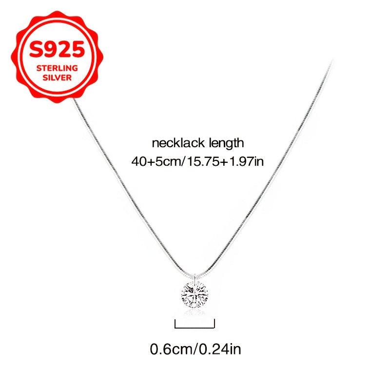 S925 Silver Snake Bone Chain Necklace with Zirconia Pendant Elegant Daily Wear