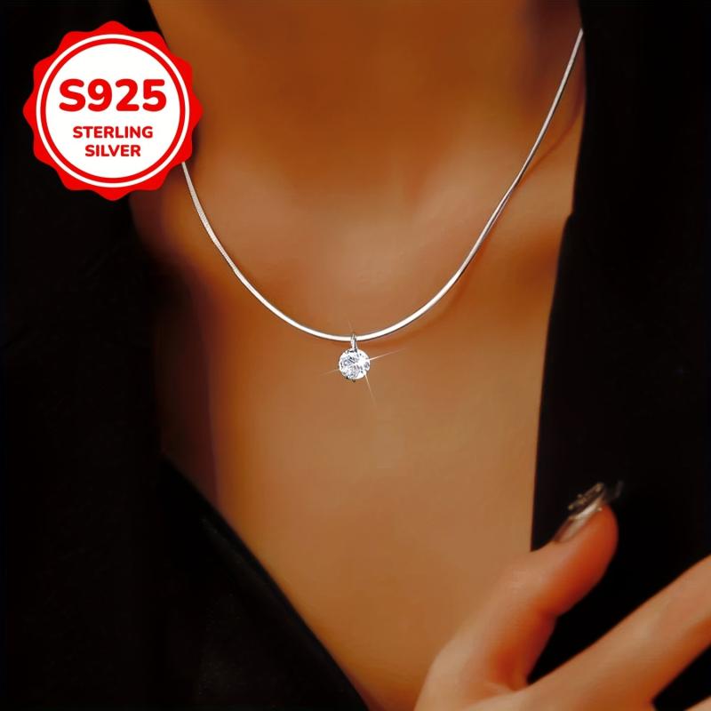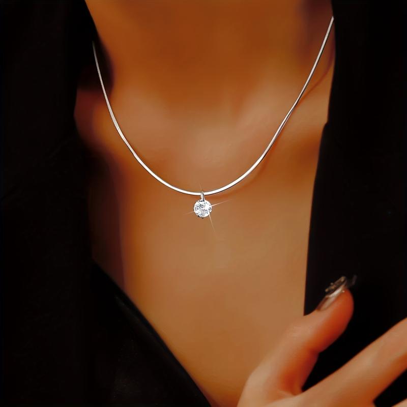 This necklace features a minimalist design with a synthetic zirconia pendant, making it perfect for daily wear or vacations. Crafted from sterling silver, it is refined and elegant, adding a touch of sophistication to any outfit.