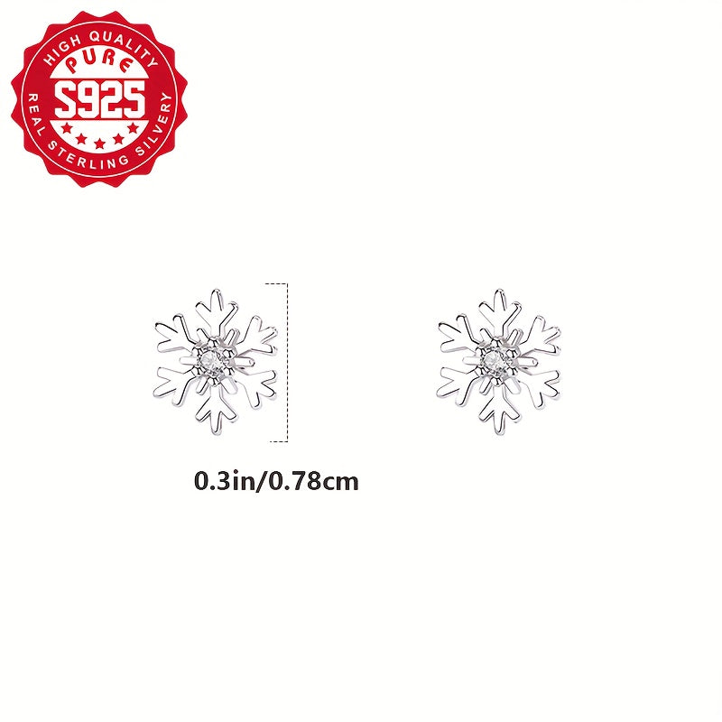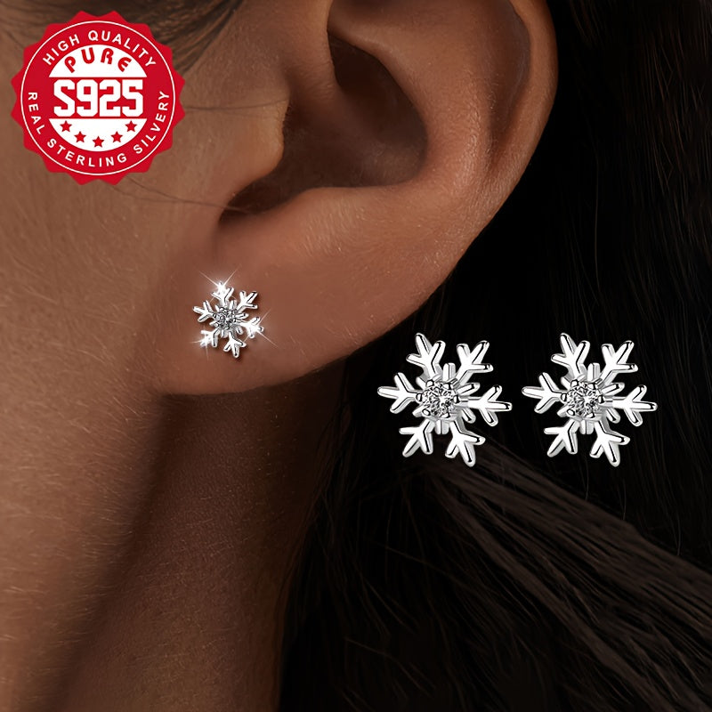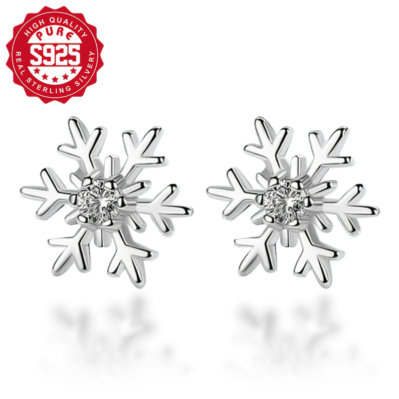 These elegant S925 silver earrings feature snowflake design with synthetic zirconia inlays. Perfect for festive occasions and gifting, safe for low allergy.
