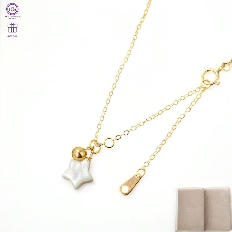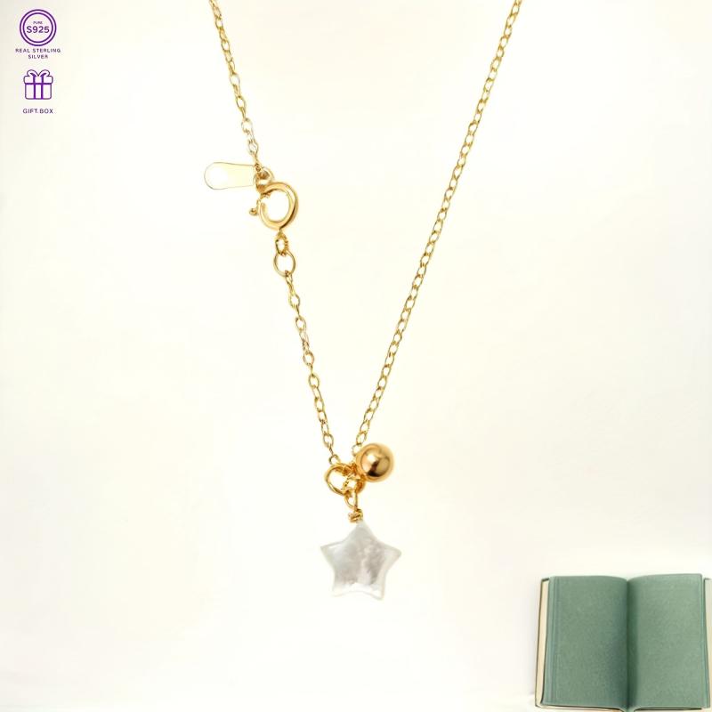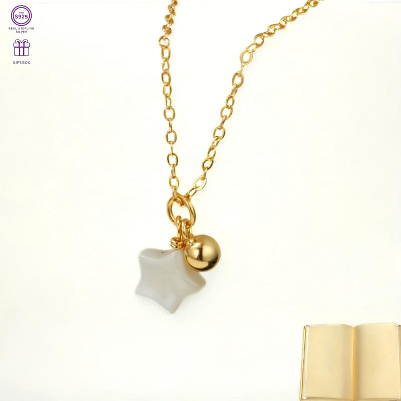 S925 Silver Star Pendant Necklace with Golden Sphere