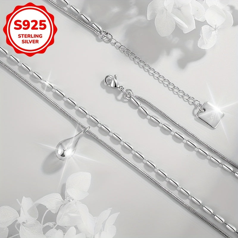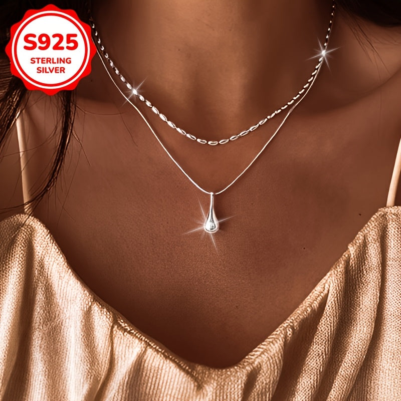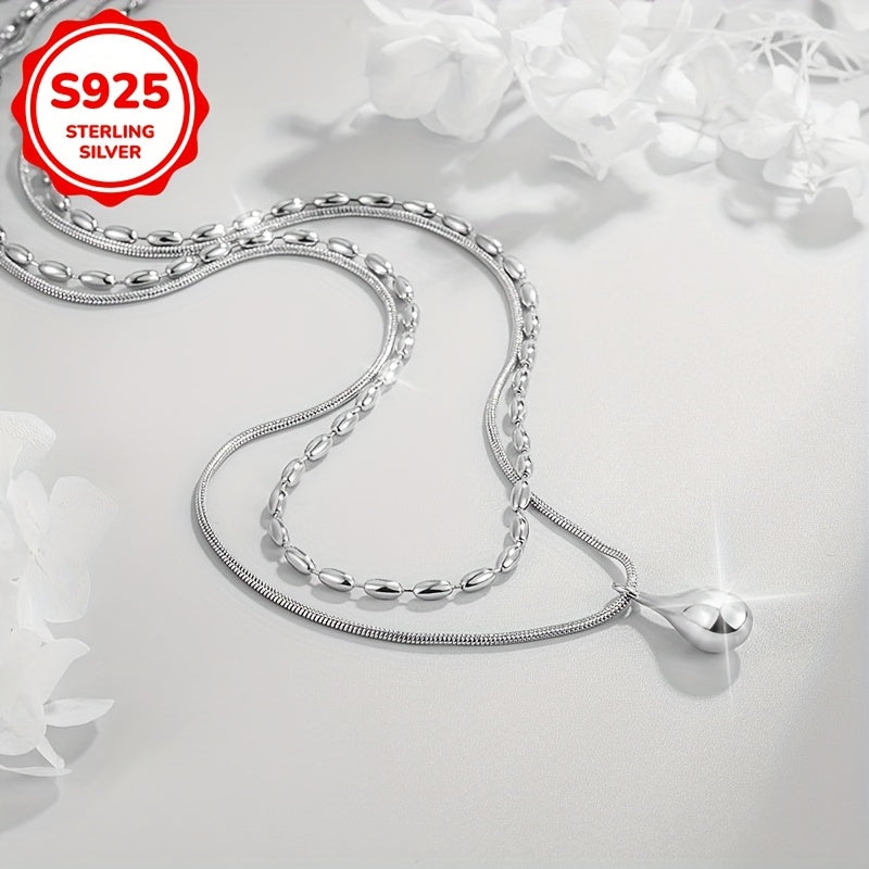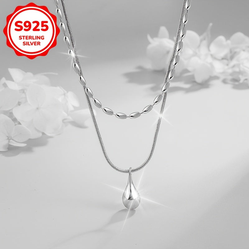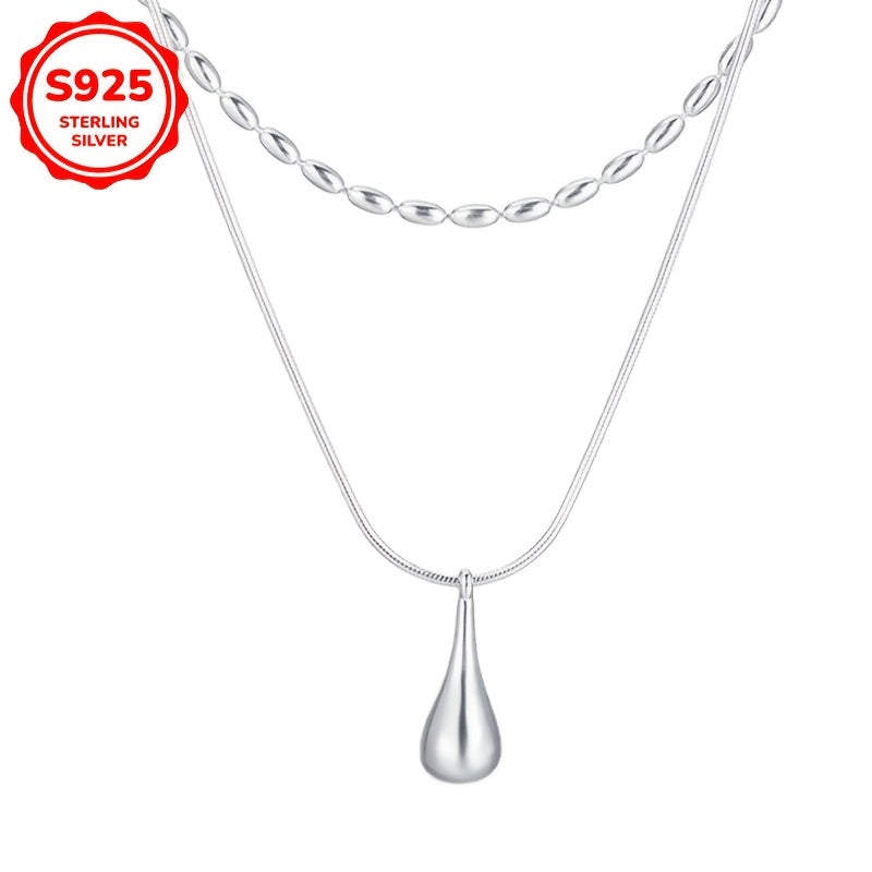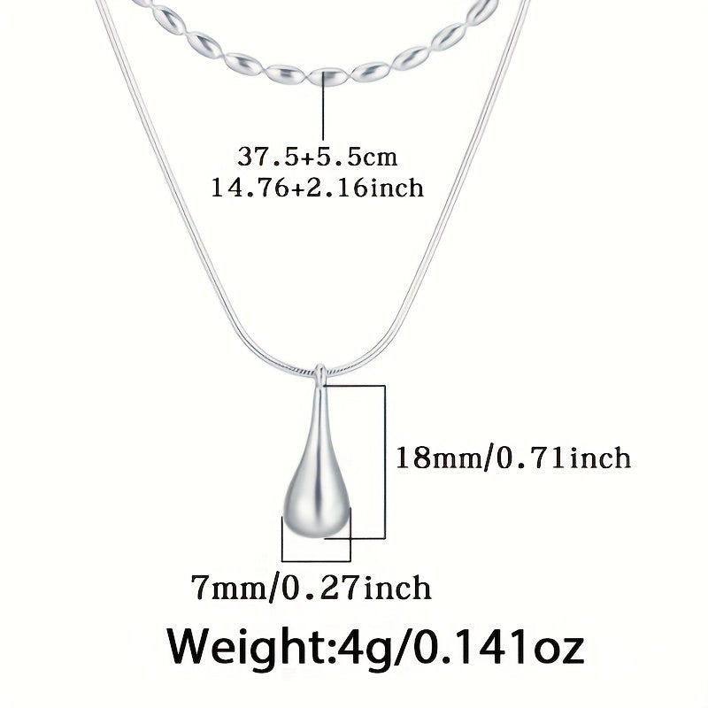 This necklace features a double layered beaded design that is versatile and stylish. The teardrop shaped pendant is perfect for daily wear.