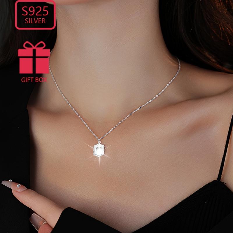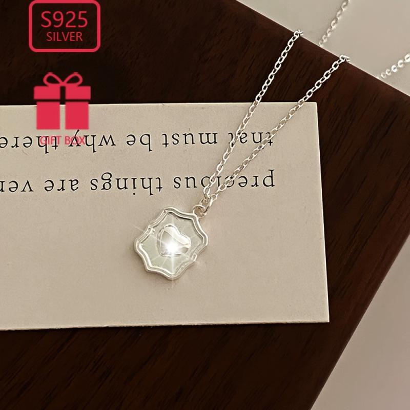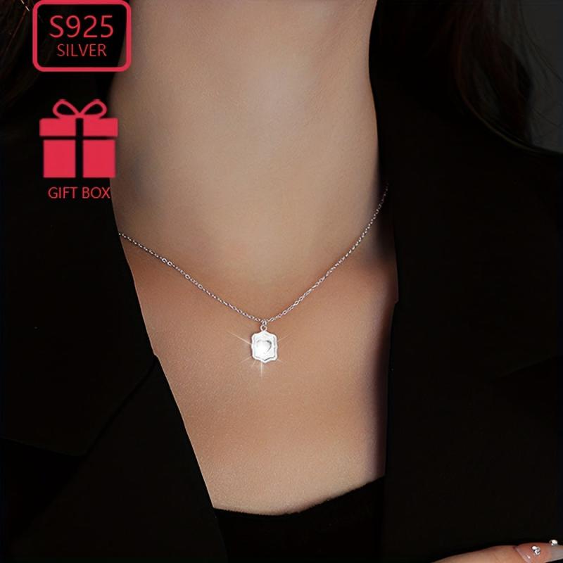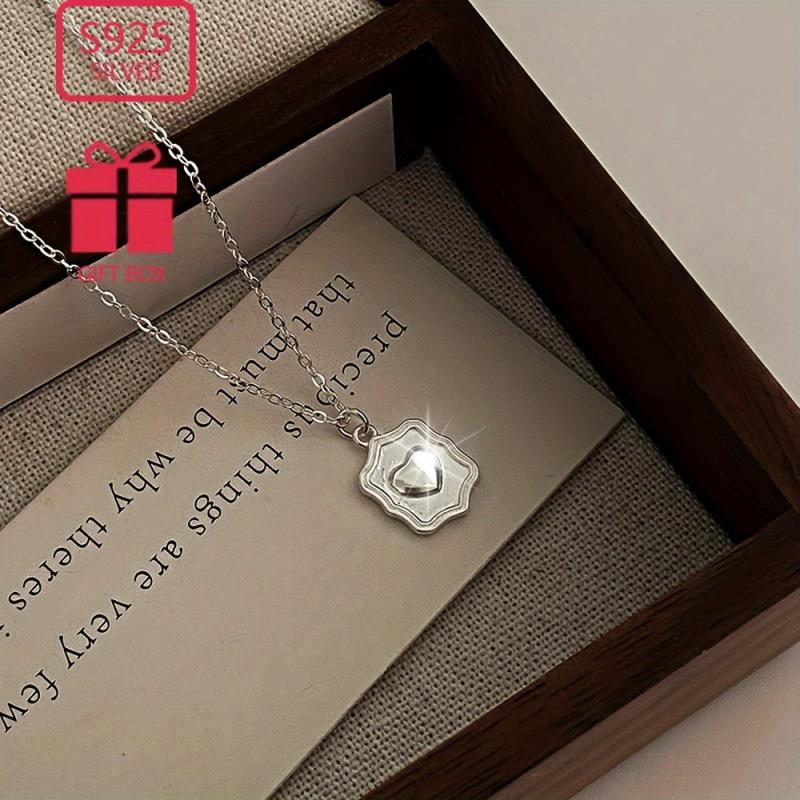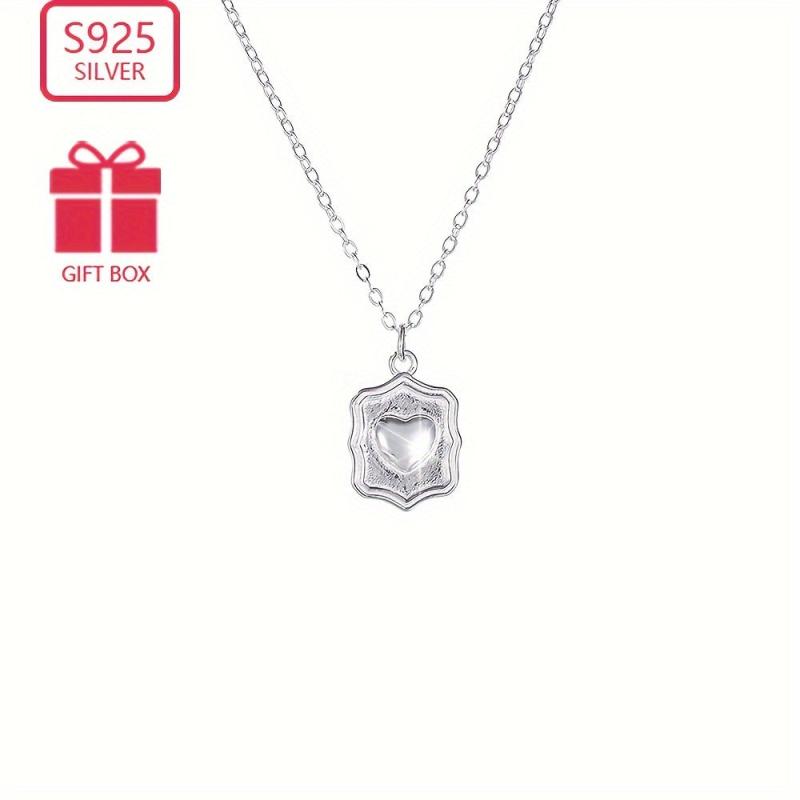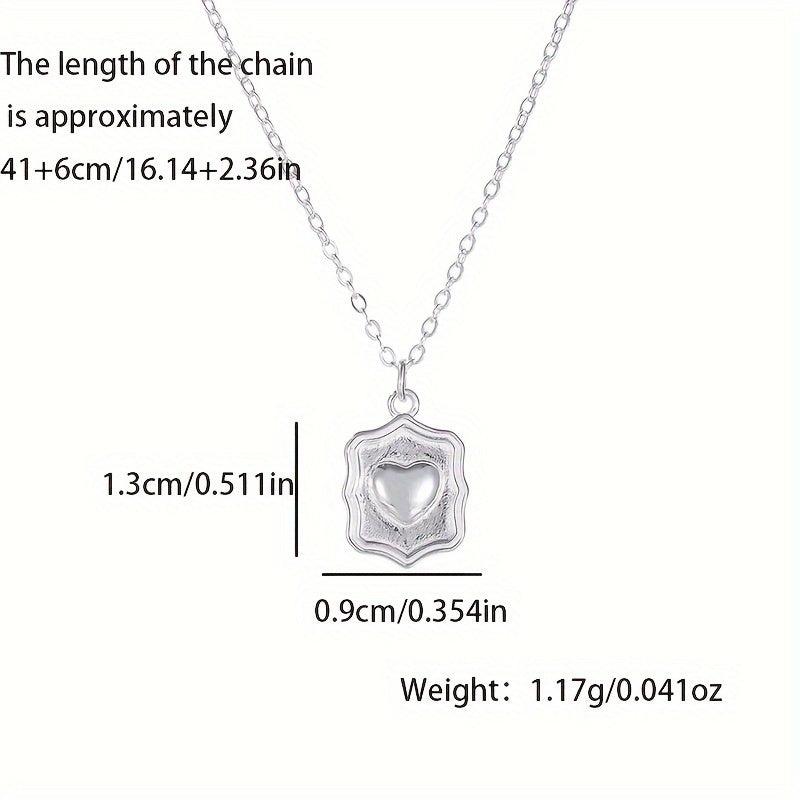 This minimalist pendant necklace features a square design with a peach heart charm. Made of hypoallergenic S925 pure silver, this necklace is a perfect gift for your girlfriend. Approximate weight is 1.17g.