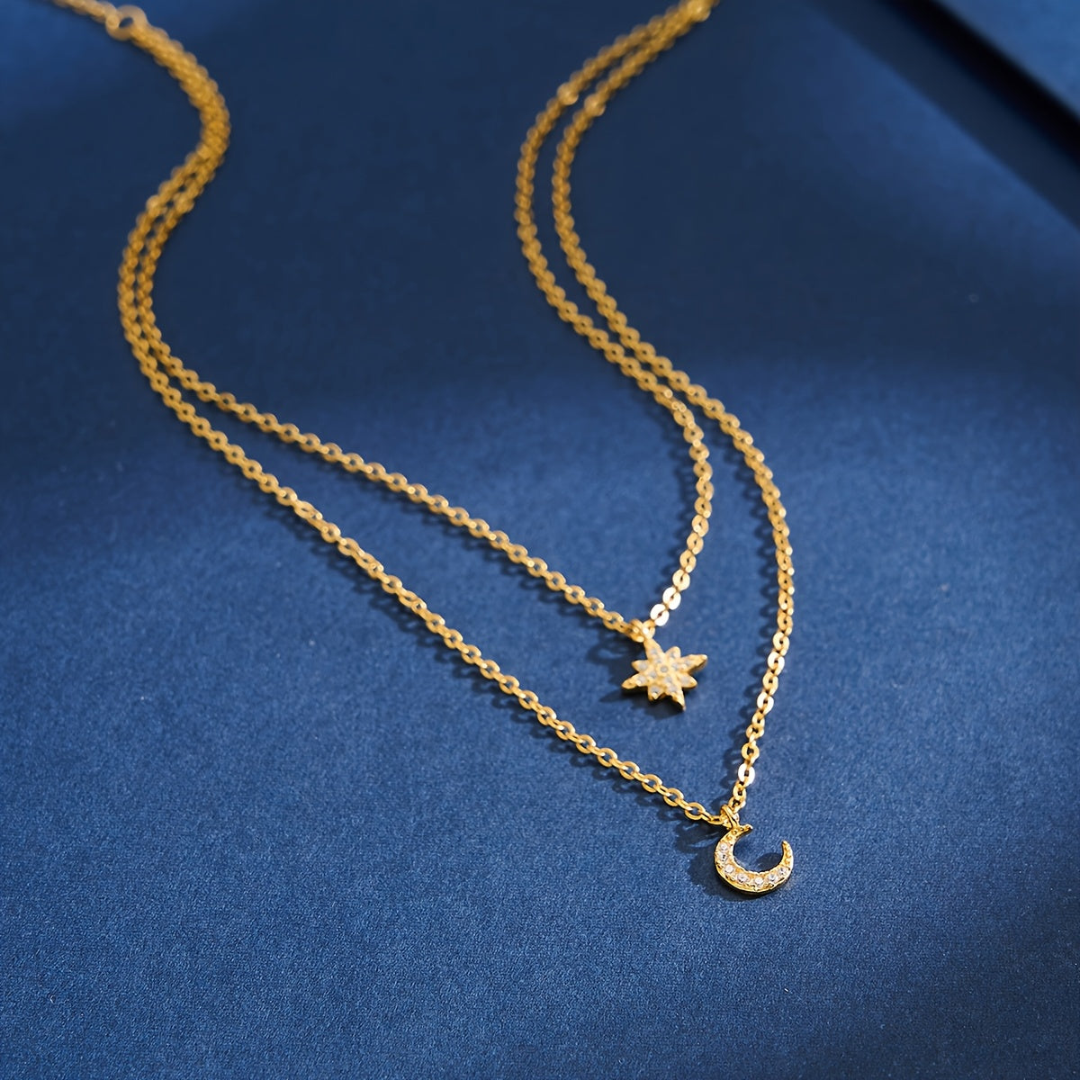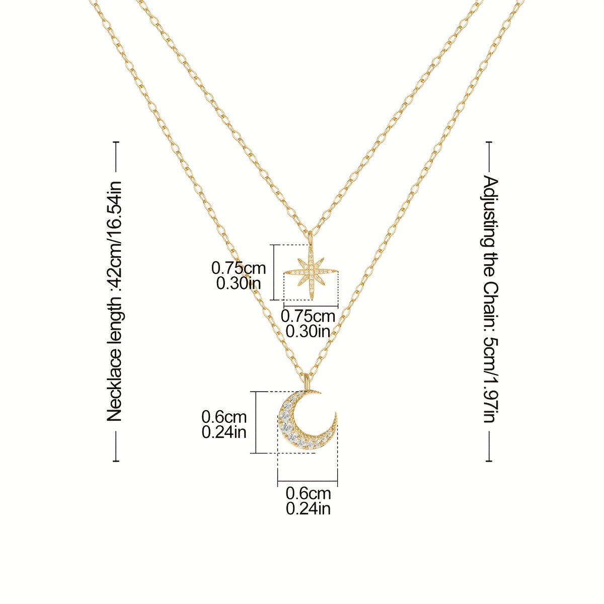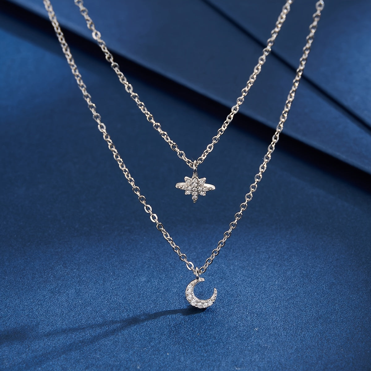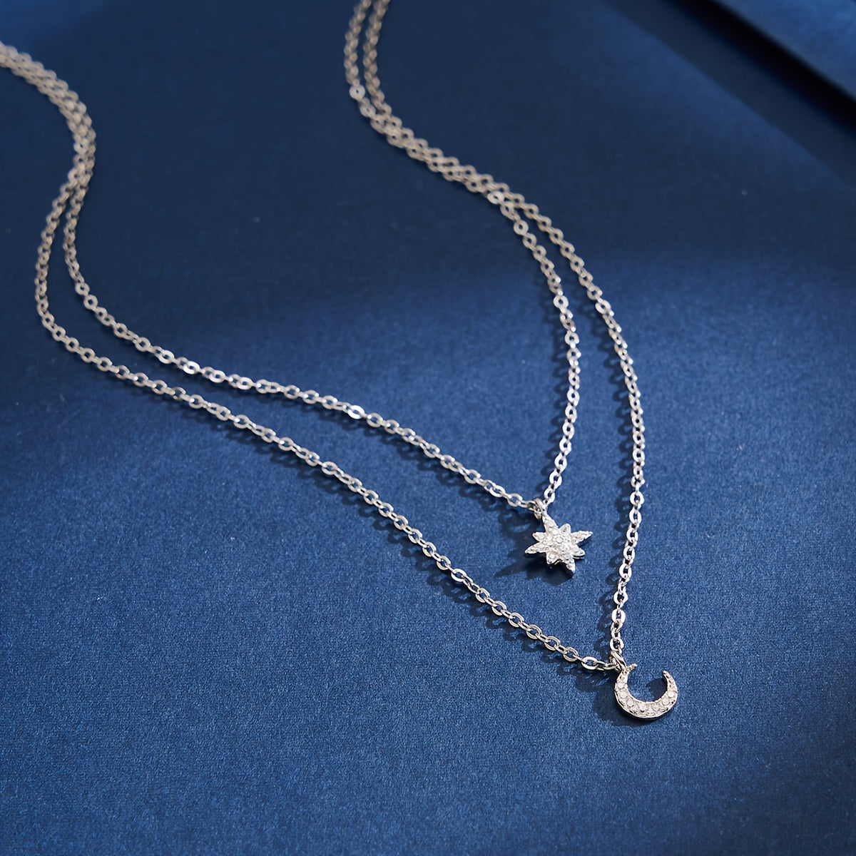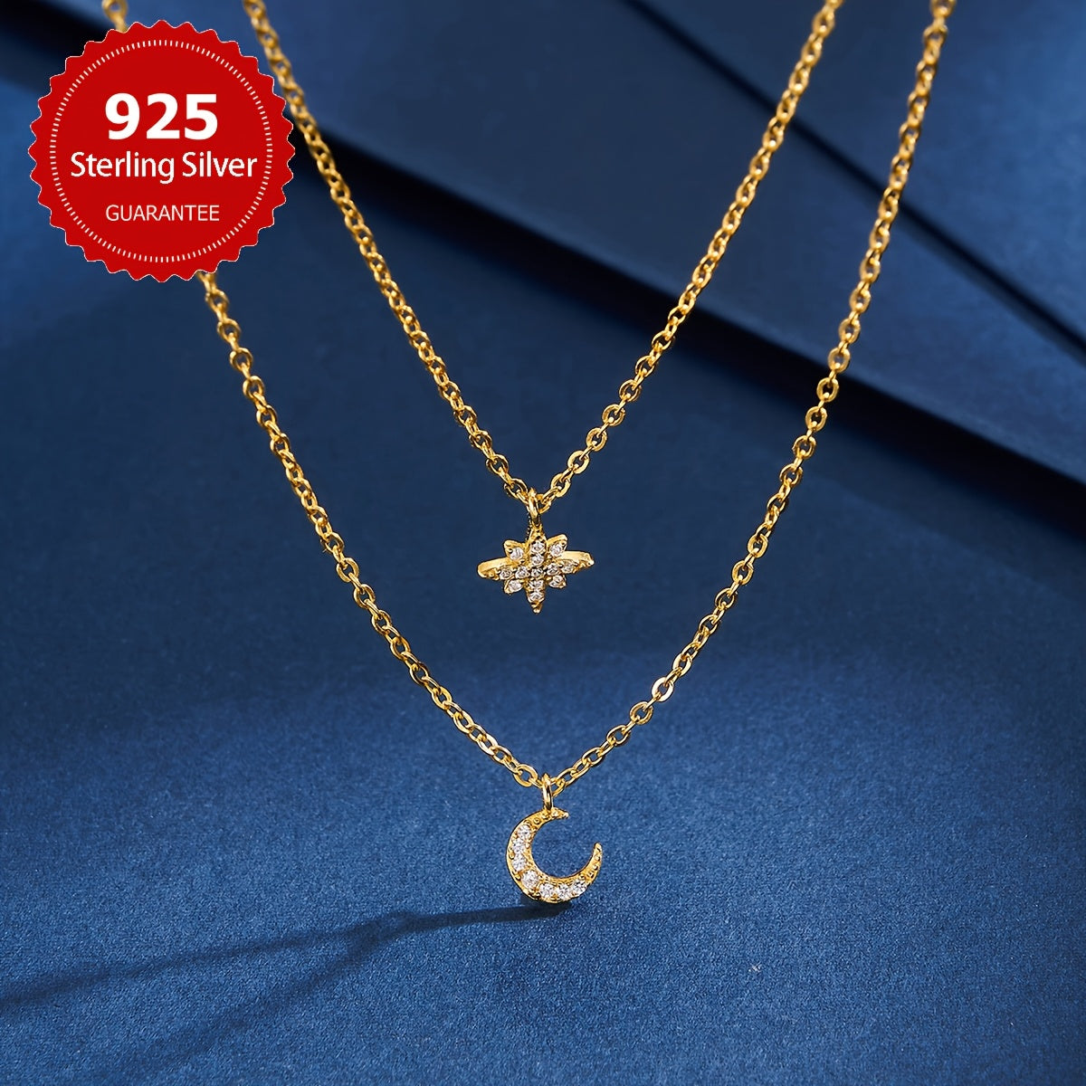 Elevate your style with this double layer necklace featuring a stars and moon pendant. Made of high-quality S925 sterling silver, this necklace is versatile for everyday wear.