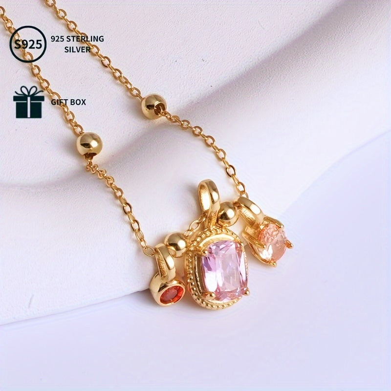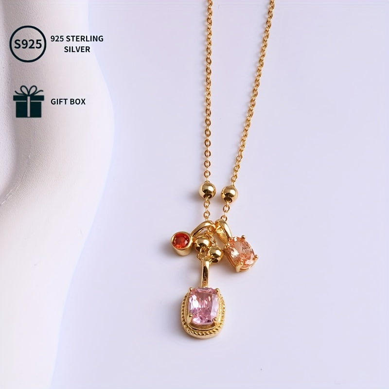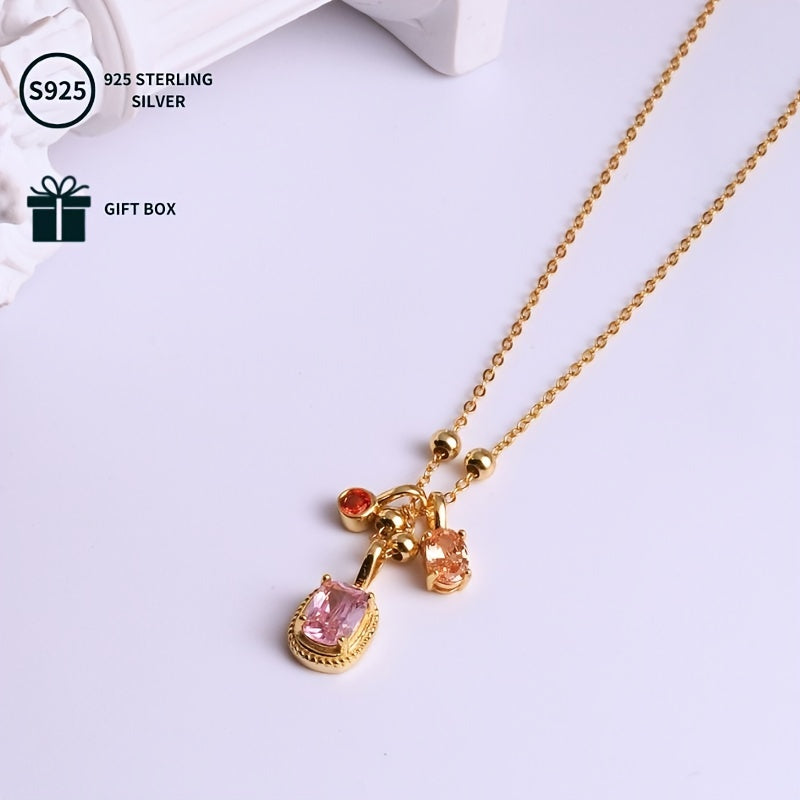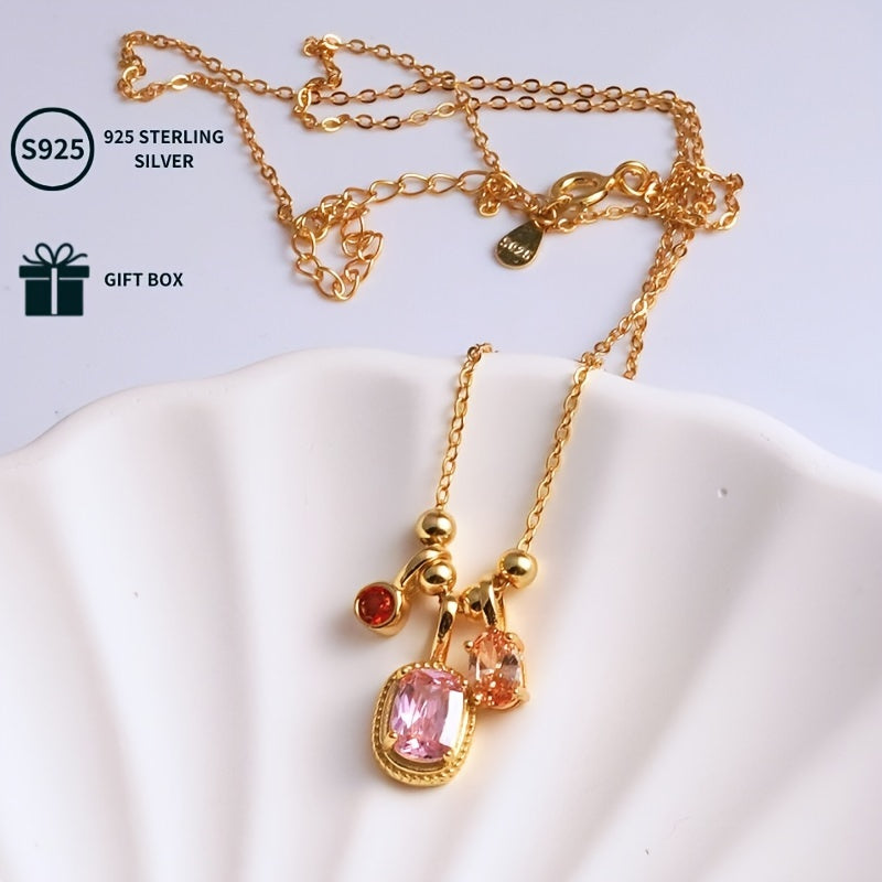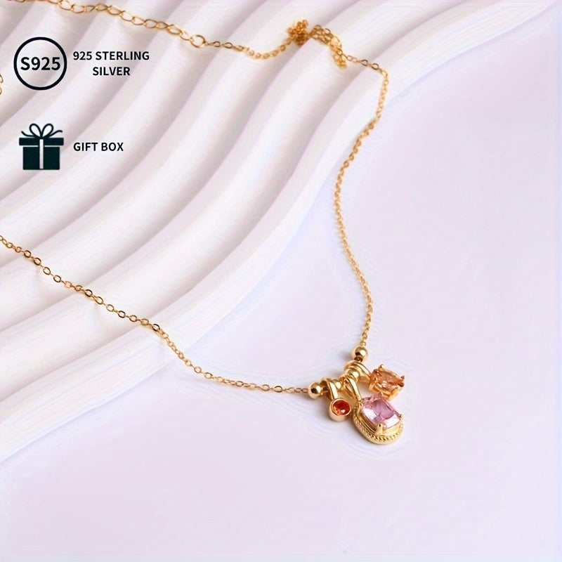 S925 Sterling Silver Sugar Square Pendant Necklace
