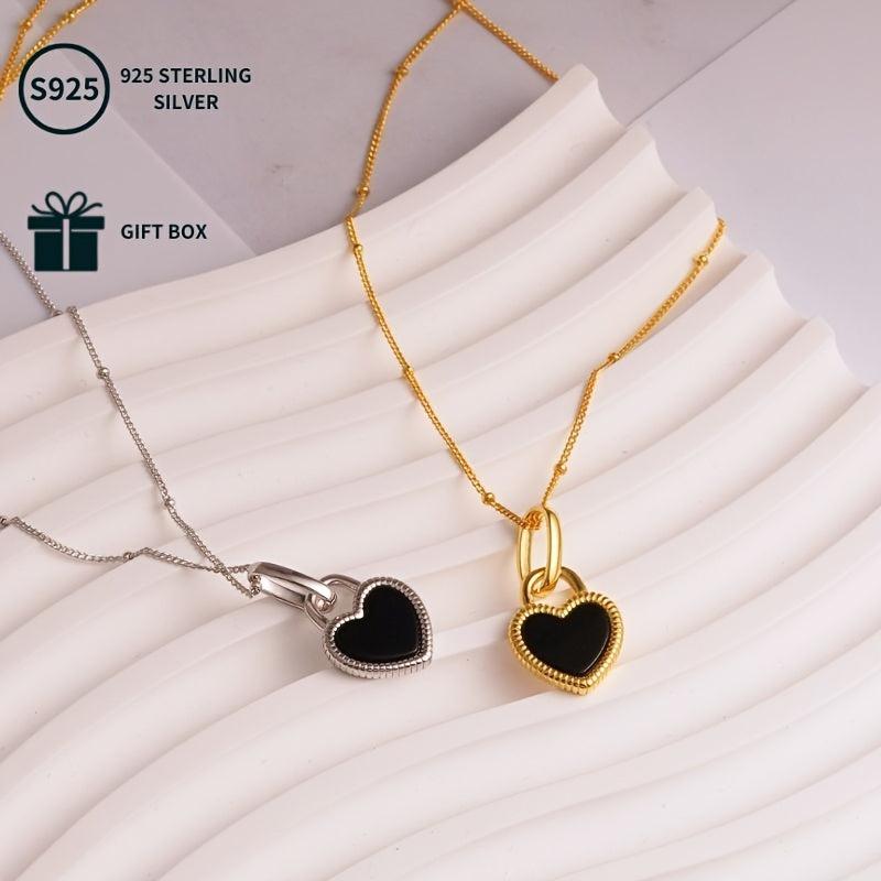 Add a touch of elegance to your outfit with this beautiful S925 sterling silver necklace featuring two love pendants. Perfect for parties, banquets, and special occasions like Christmas or birthdays.