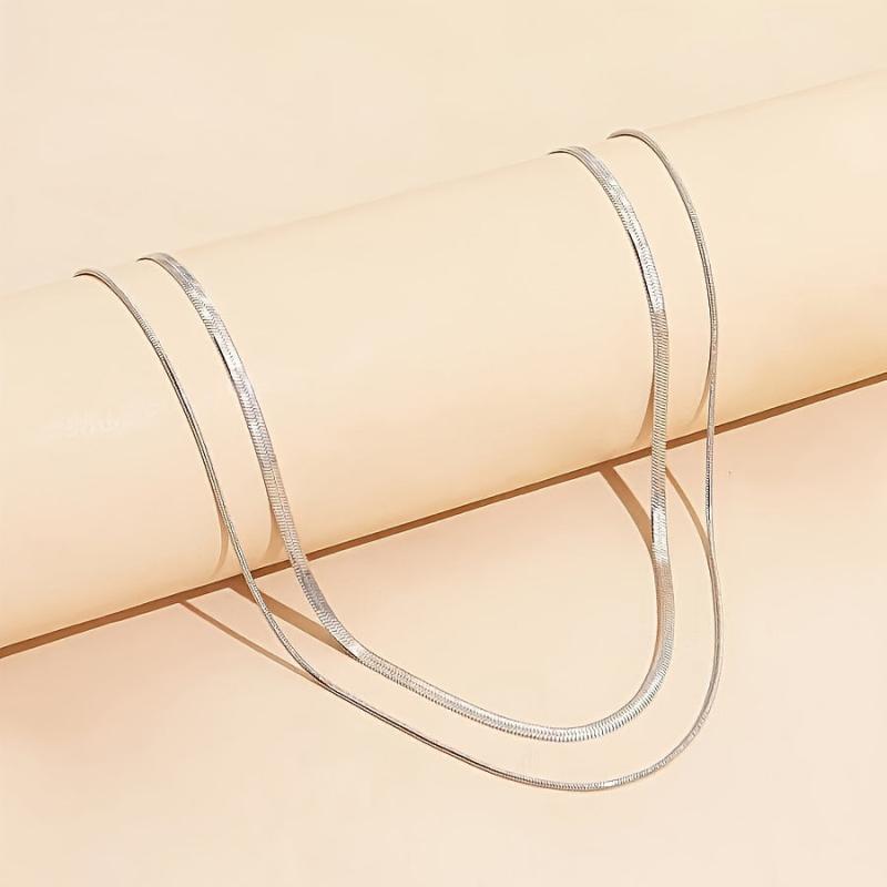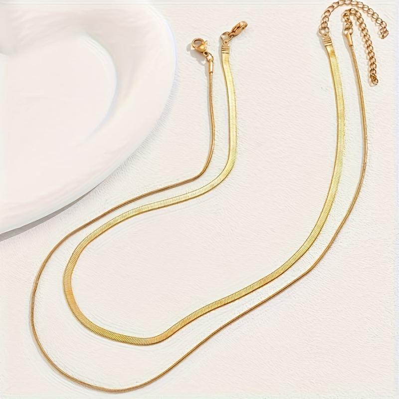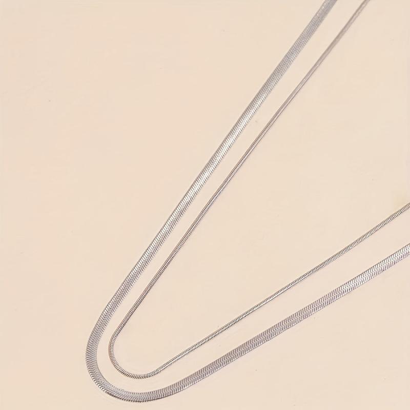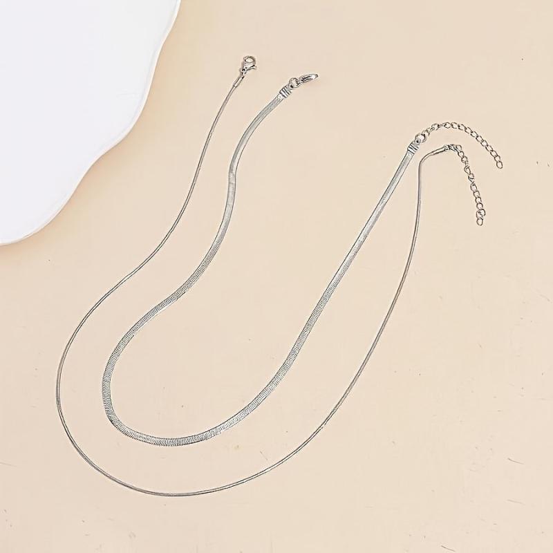 Elevate your style with this set of 2 flat snake chain collarbone necklaces that are perfect for layering and adding a touch of sophistication to any outfit.