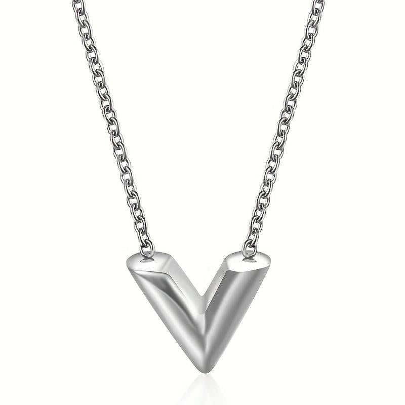 Set of 4 Stainless Steel Letter V Pendant Jewelry for Women