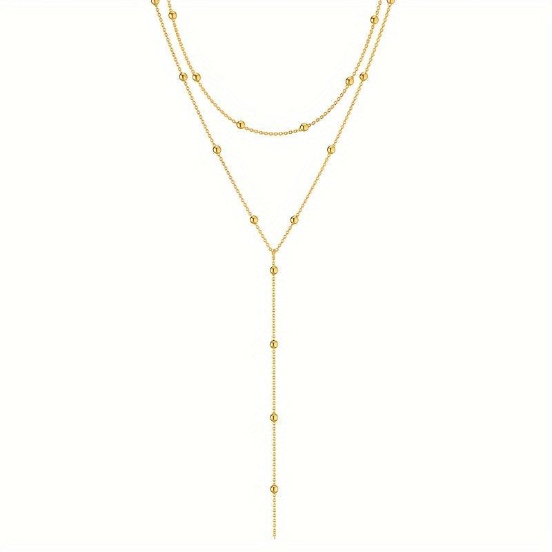 Elevate your look with this stunning Y necklace featuring geometric tassel design with beaded accents. Made of iron material, it is versatile for daily wear, parties, and vacation style. Suitable for all seasons.