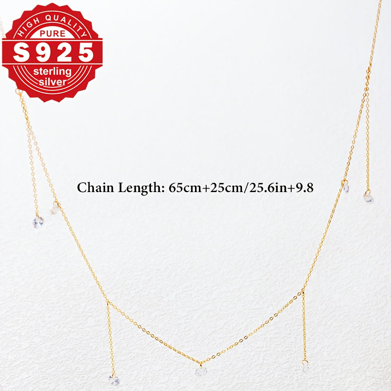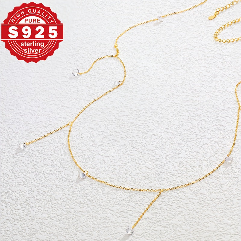 • S925 pure silver waist chain with zirconia inlays