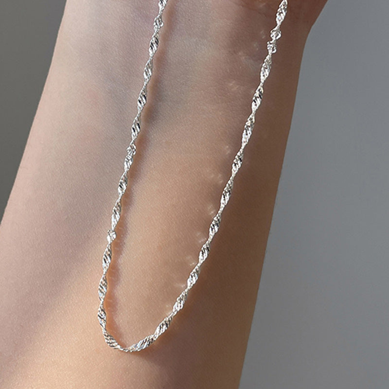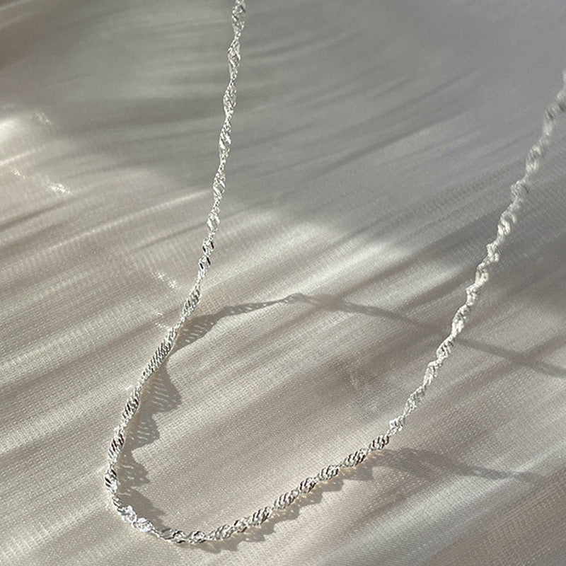 Silvery Wave Choker Necklace Stainless Steel for Men Women