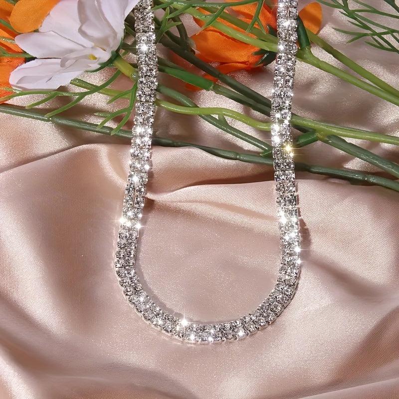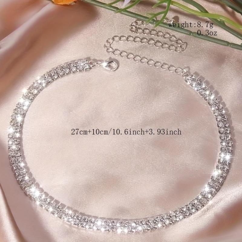 Elevate your style with this fashionable choker necklace featuring sparkling rhinestones. Made of high-quality copper, this collar adds a touch of glamour to any outfit.