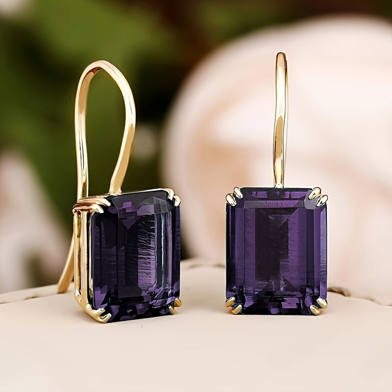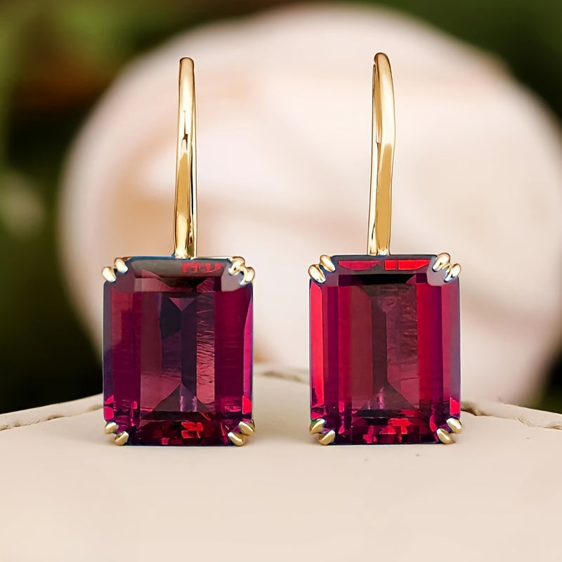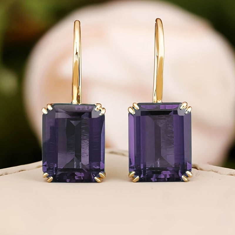 Add a touch of glamour with these stunning square ear hooks earrings featuring vibrant zirconia in green, red, and purple hues.